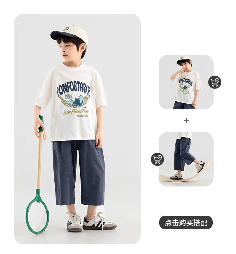 소년 반바지 2025 새로운 여름 어린이 스트레이트 잘 생긴 7부 바지 무릎 위 얇은 중대형 소년 바지스토어 가기