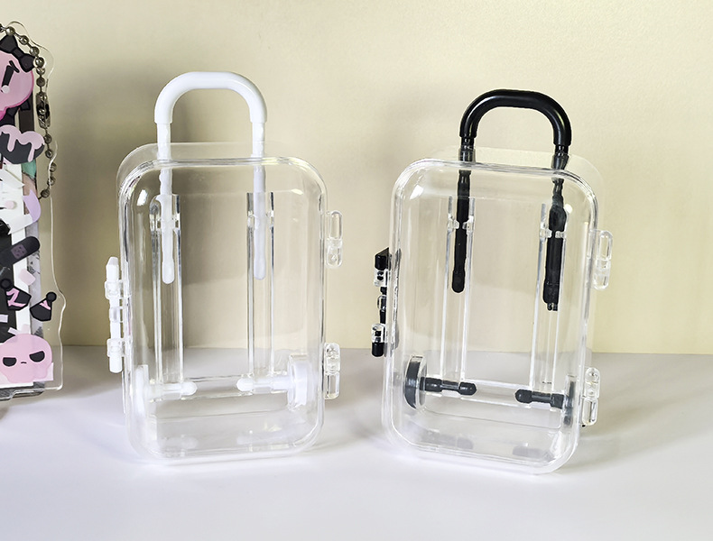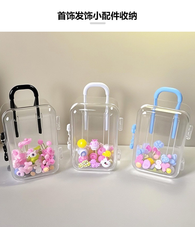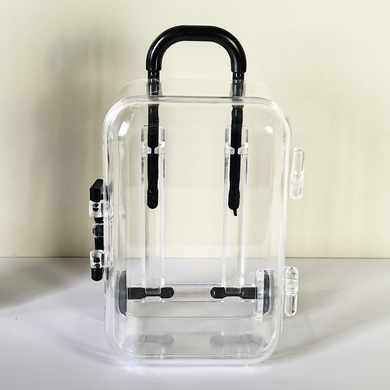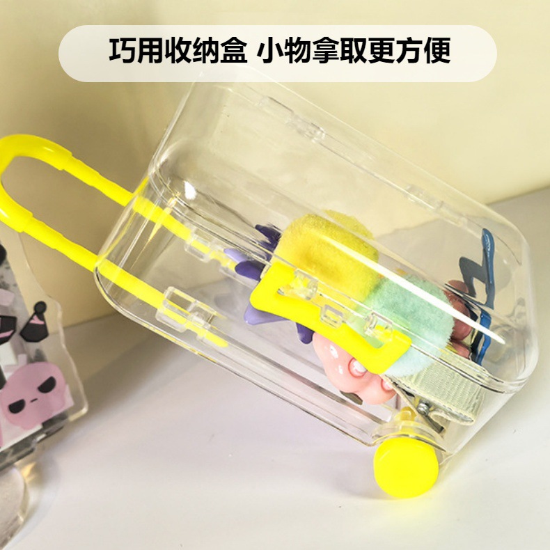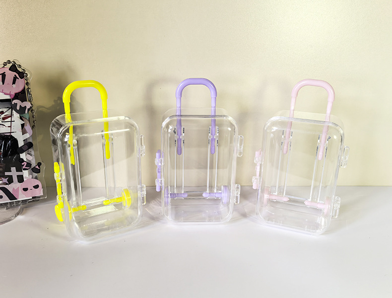 Ins 간단한 투명 미니 트롤리 케이스 쥬얼리 액세서리 개폐식 마이크로 풍경 장난감 보관 상자 도매스토어 가기