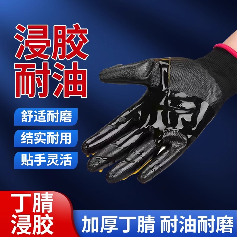 Hengruixiang N518 내마모성 통기성 반고무 검정색 부드러운 고무 장갑 검정색 원사 검정색 니트릴 함침 보호 노동 보호 장갑스토어 가기