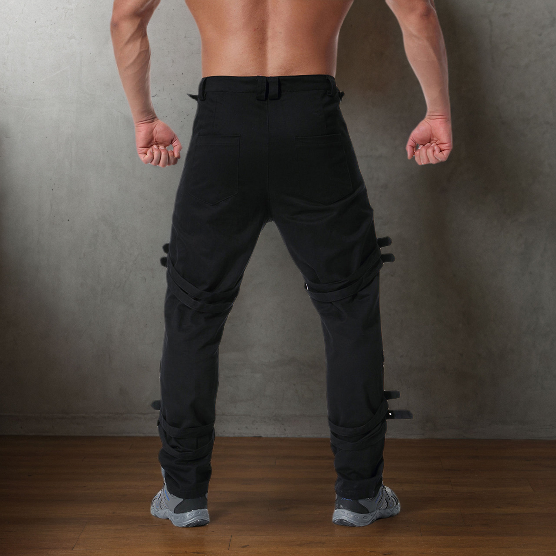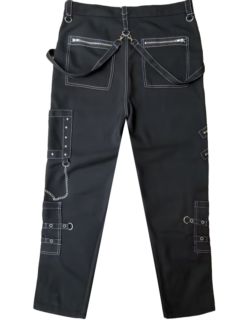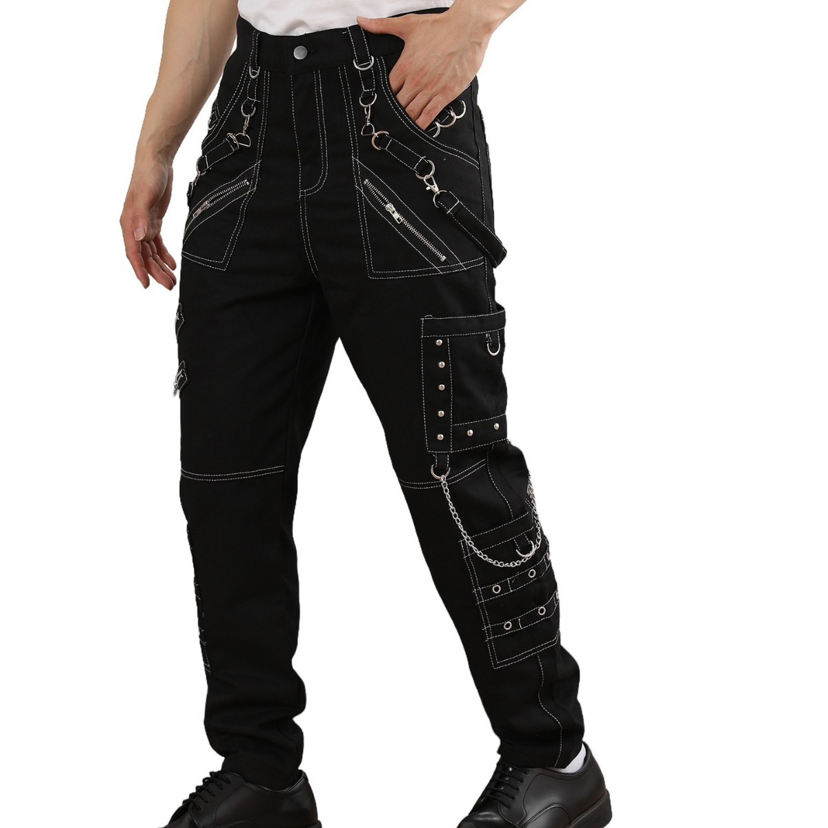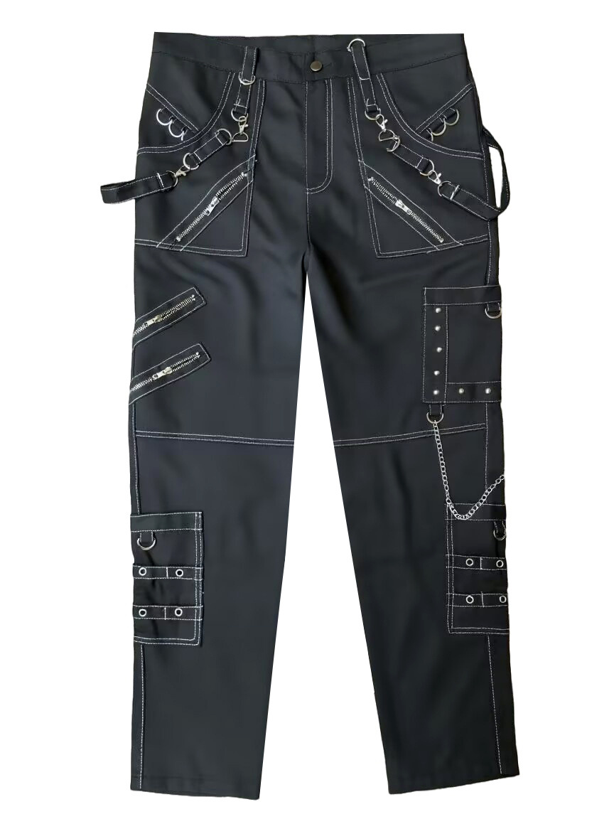 체인 장식 성격 캐주얼 바지 남자 고딕 바지 펑크 록 구멍 바지 바지 속박 청바지