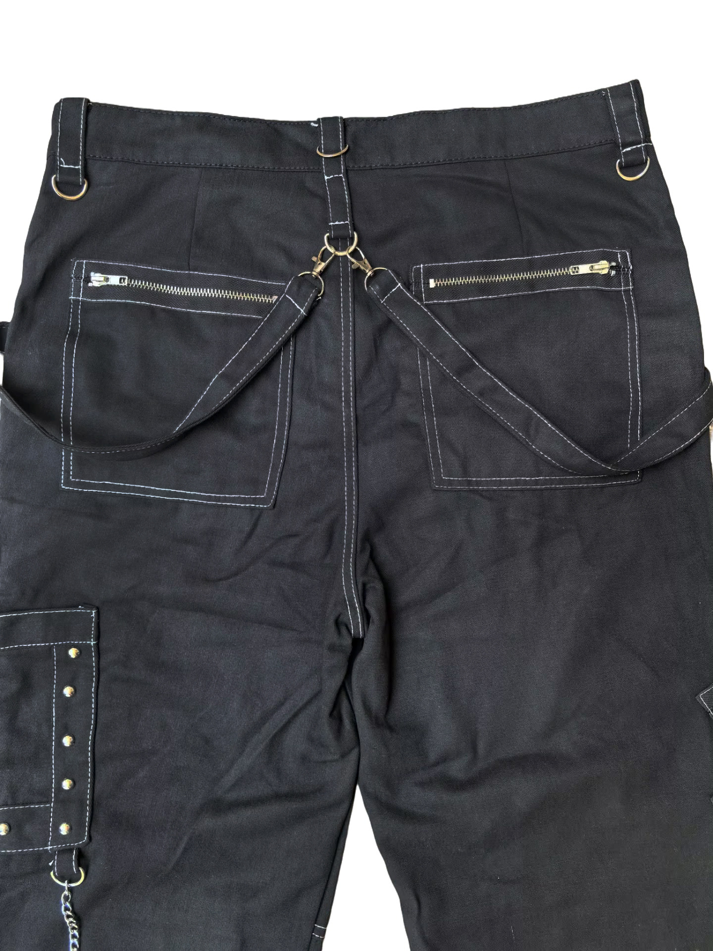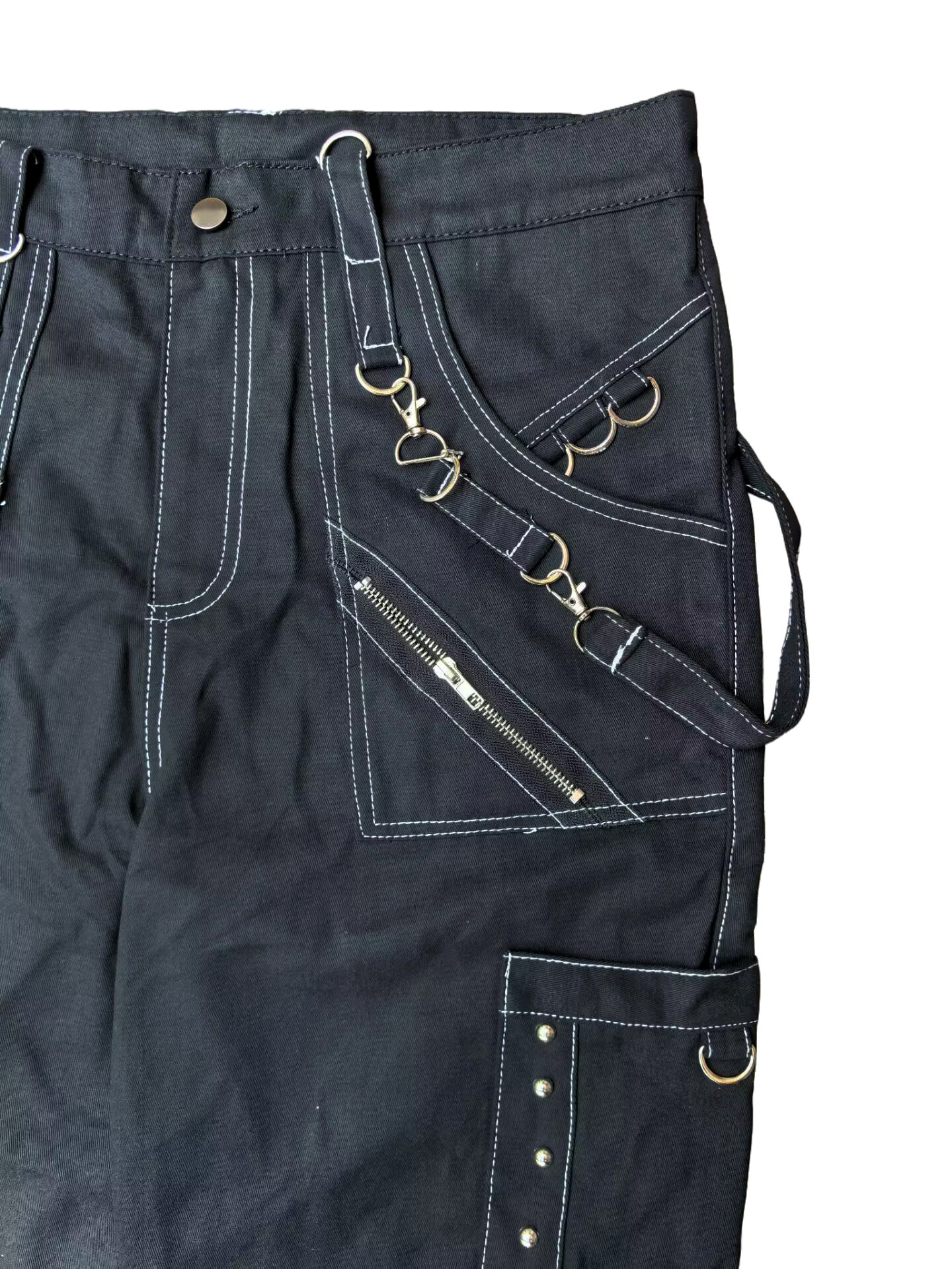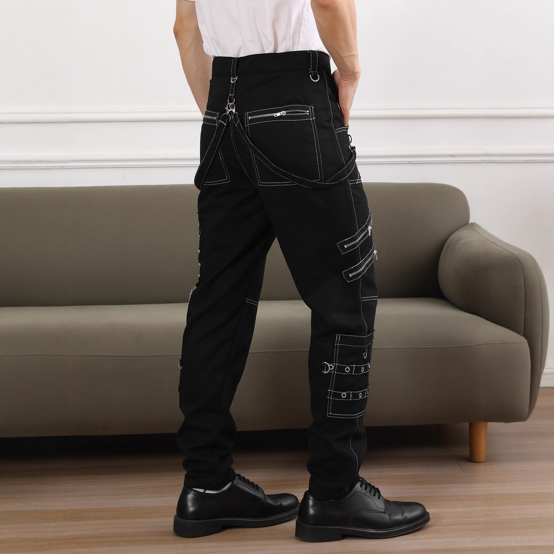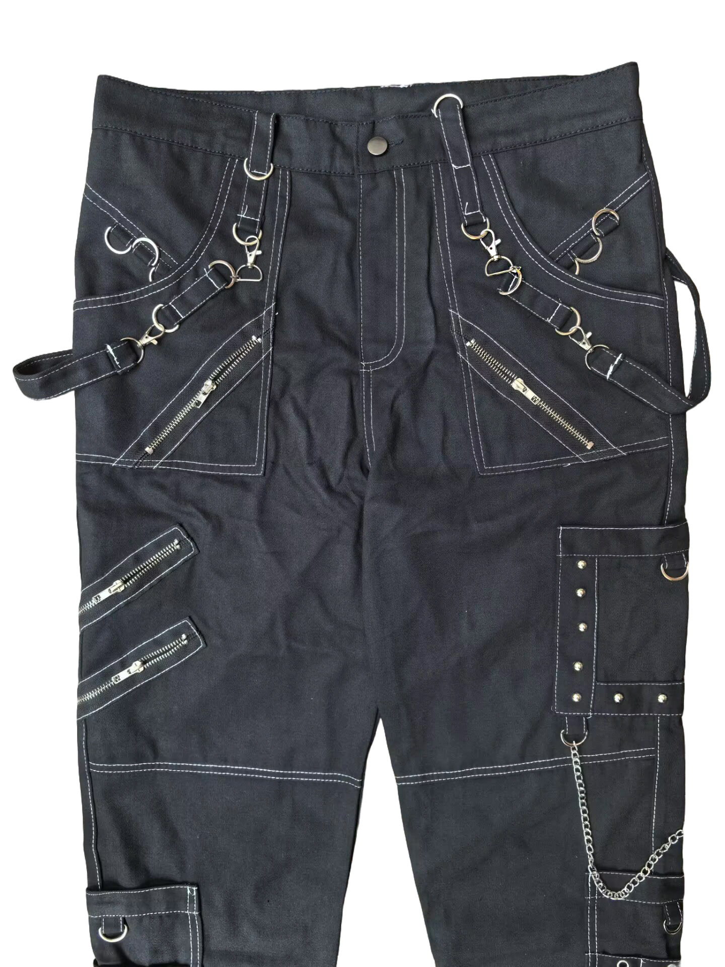 체인 장식 성격 캐주얼 바지 남자 고딕 바지 펑크 록 구멍 바지 바지 속박 청바지스토어 가기