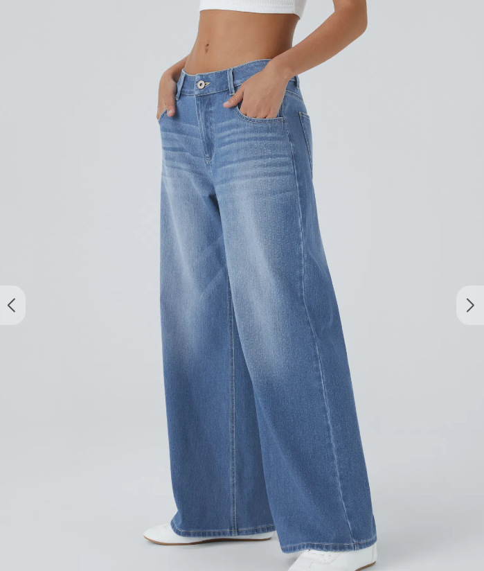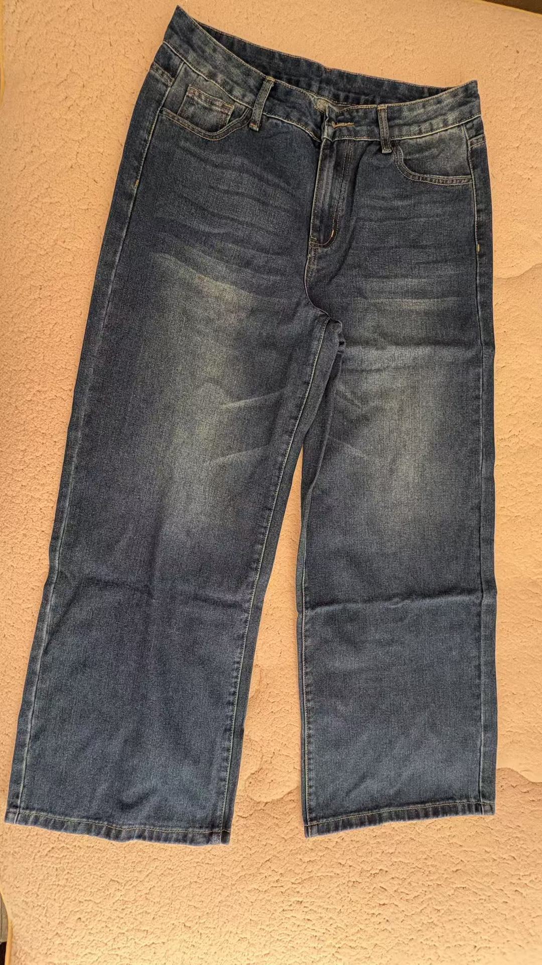 7100 재고 있음, 크로스보더 레트로 워싱 멀티 공예 와이드 레그 아마존 청바지 여성용 틱톡 수출용 루즈핏
