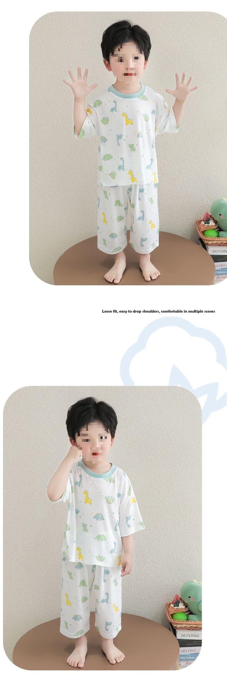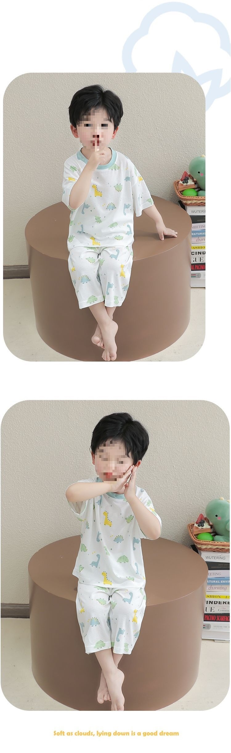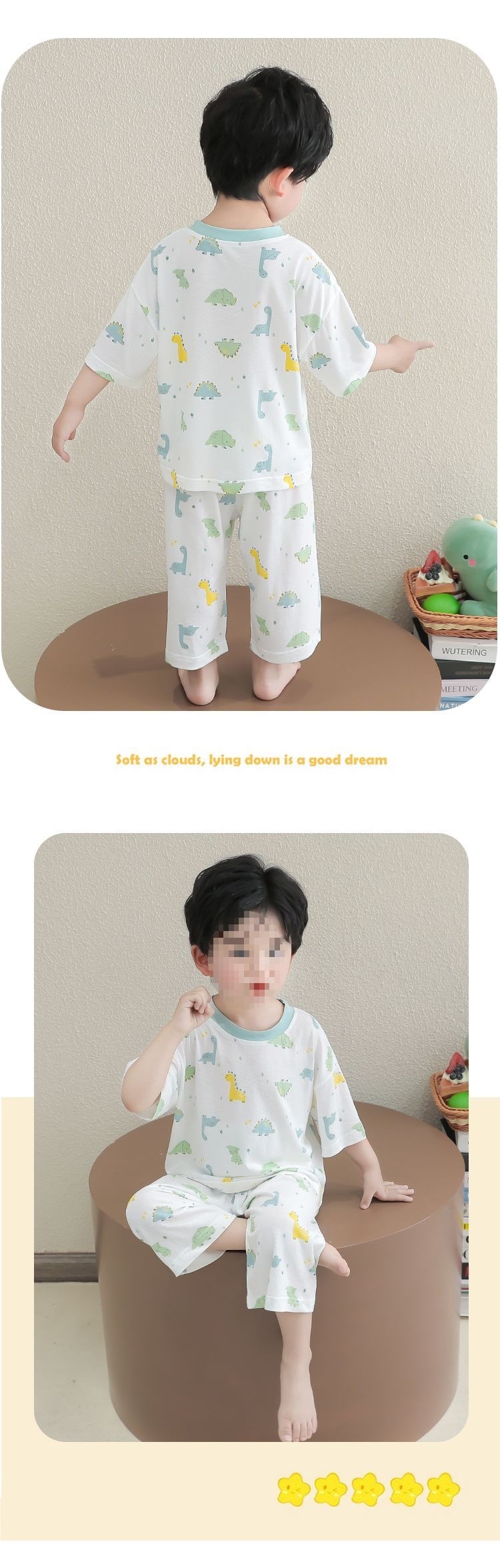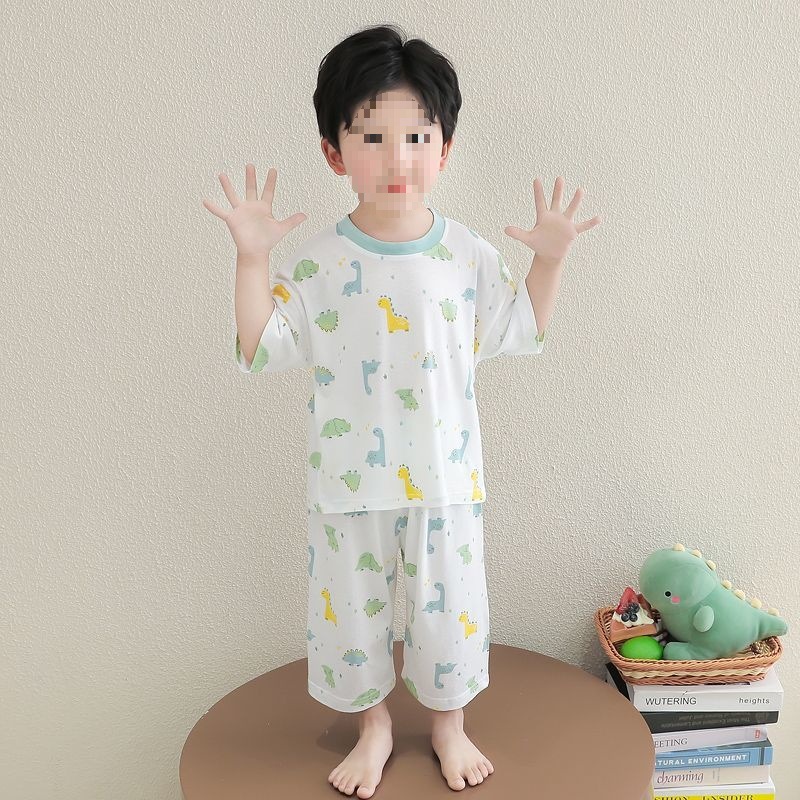 어린이 잠옷 얇은 아기 대나무 섬유 소년과 소녀 반팔 여름 잘 생긴 가정 의류 세트 7 점 에어컨스토어 가기