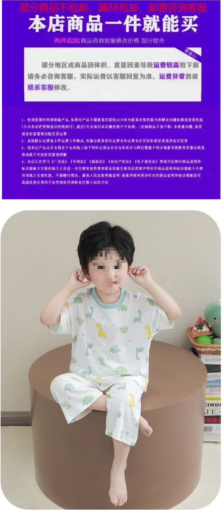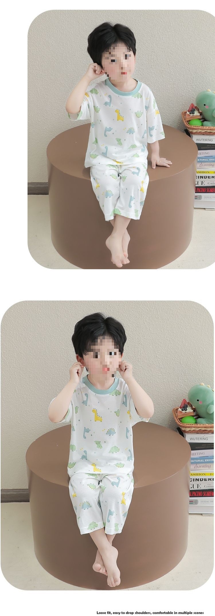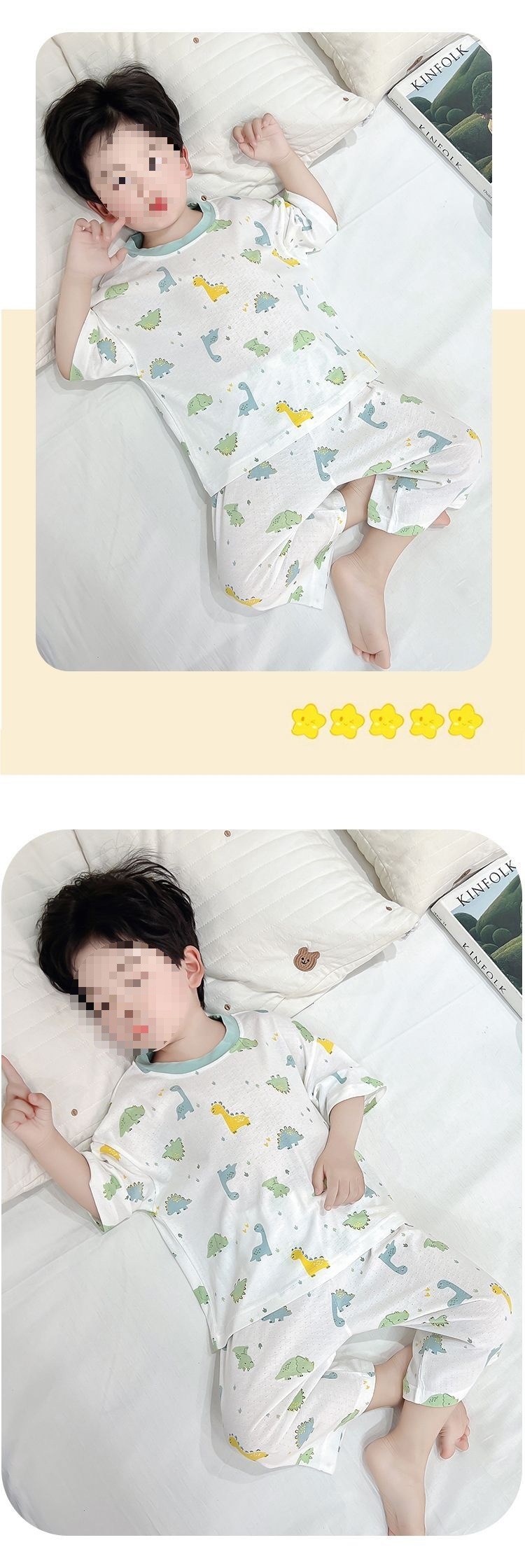 어린이 잠옷 얇은 아기 대나무 섬유 소년과 소녀 반팔 여름 잘 생긴 가정 의류 세트 7 점 에어컨스토어 가기