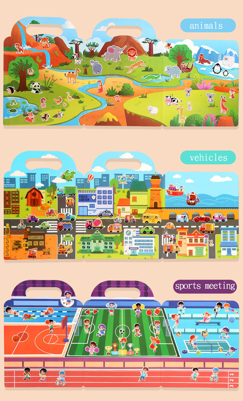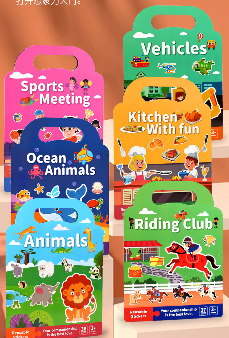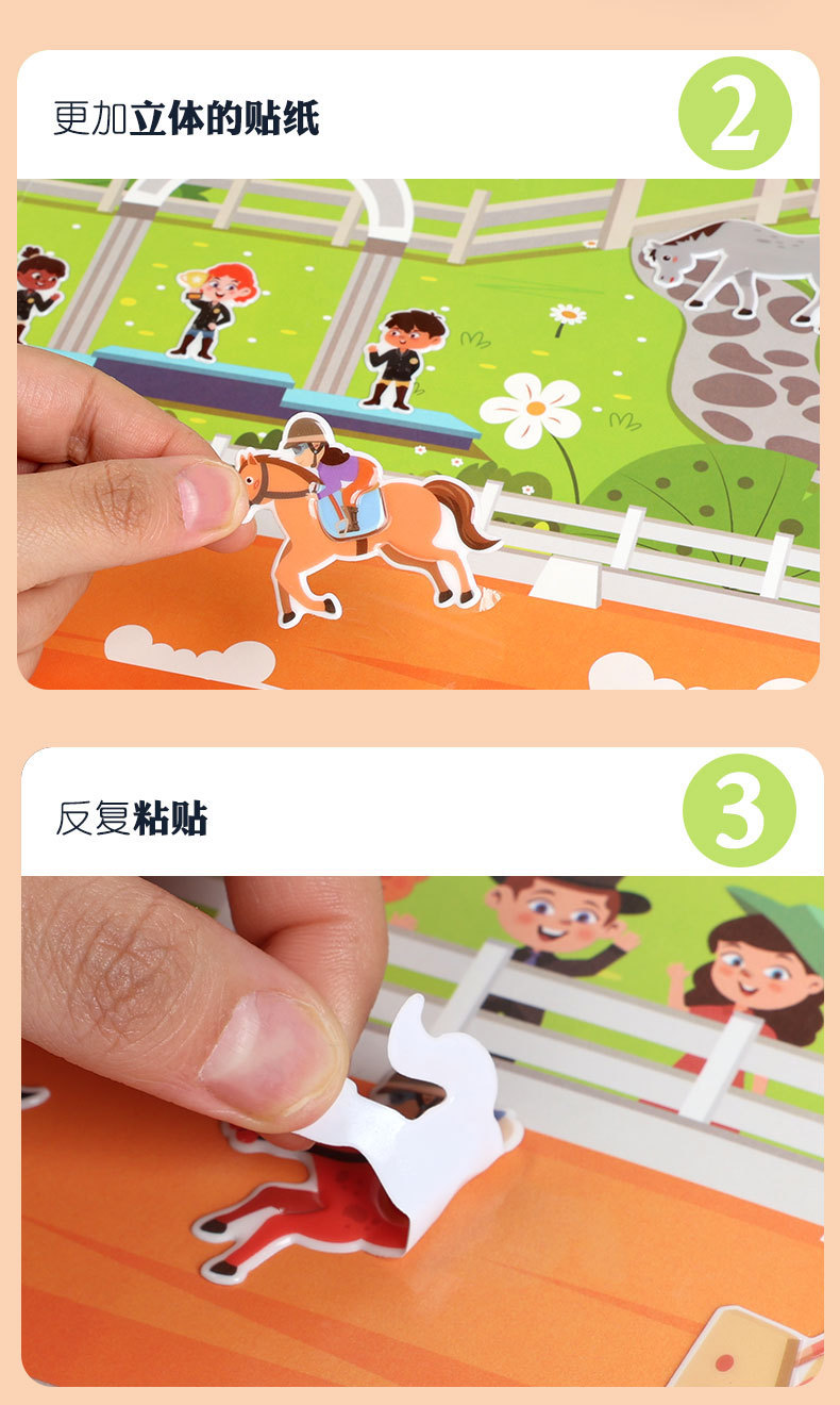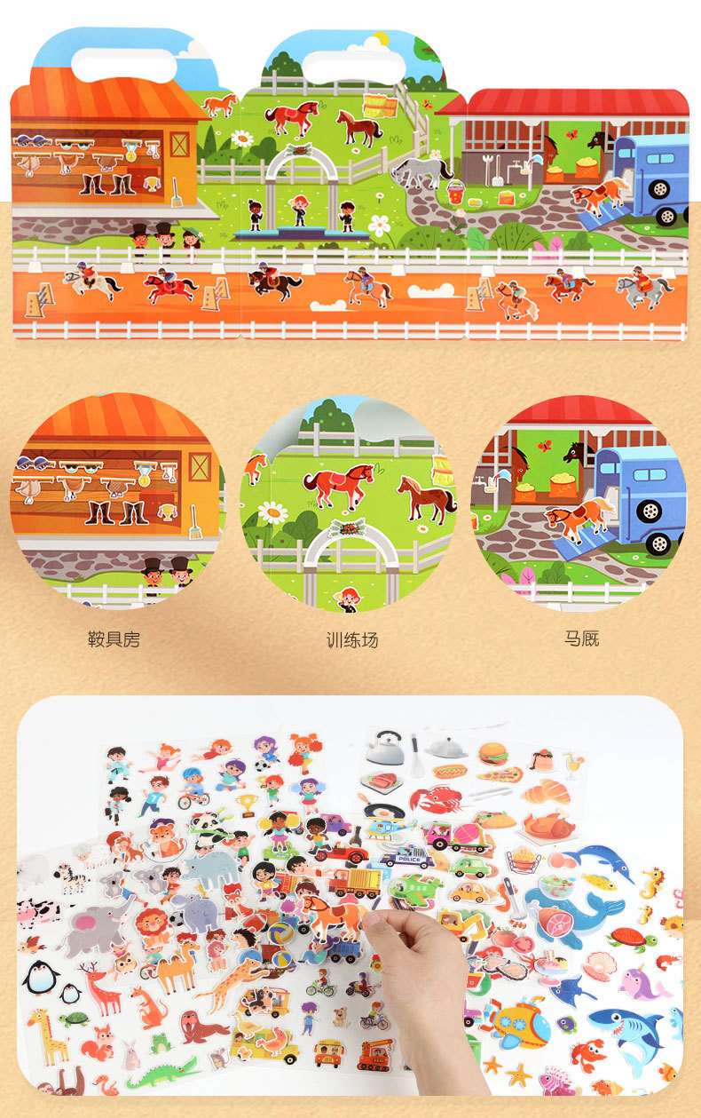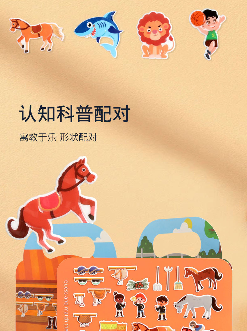 외국 무역 조용한 책 젤리 스티커 어린이 조기 교육 교구 만화 게임 스티커 3~6세 퍼즐 종이 장난감