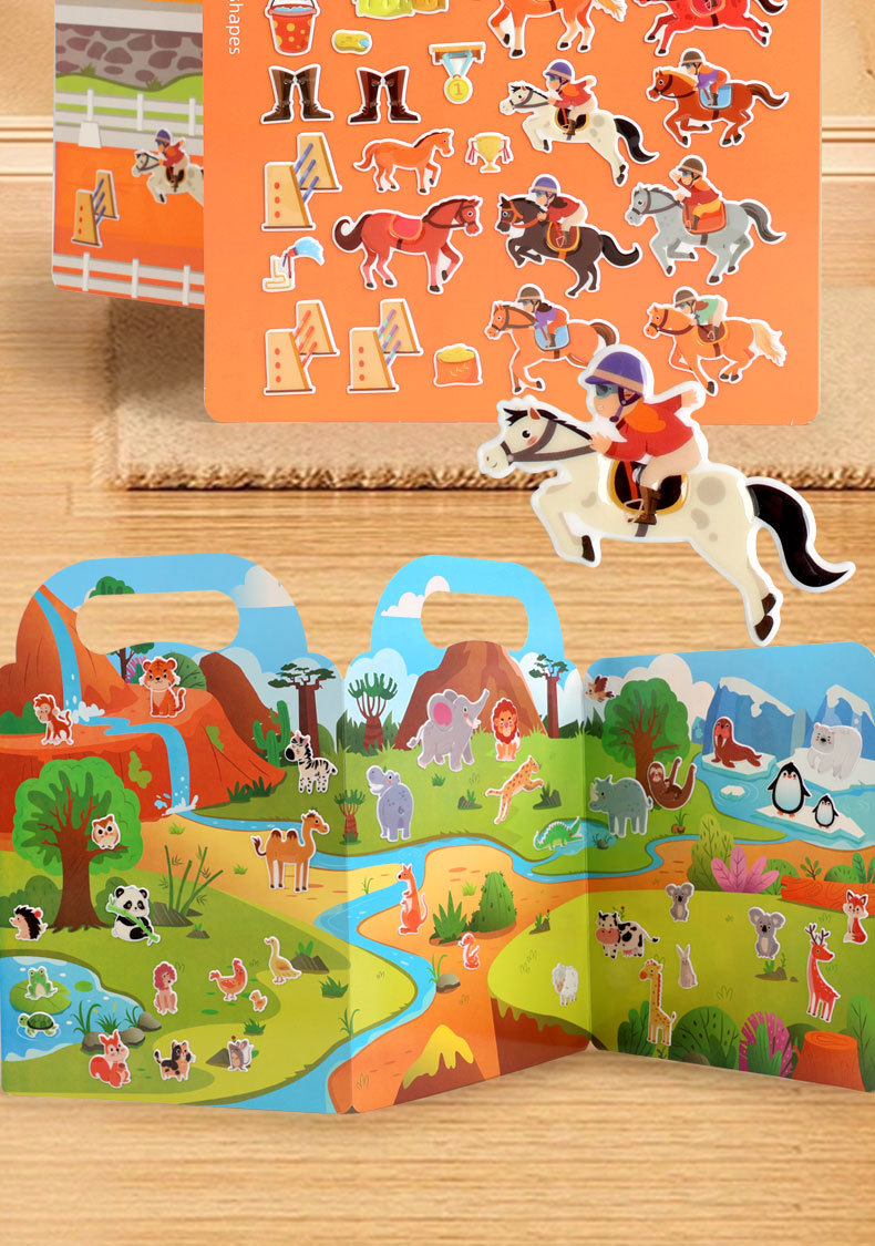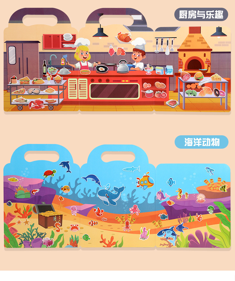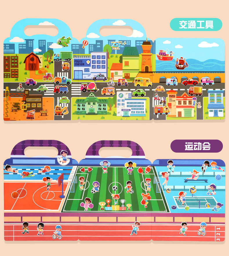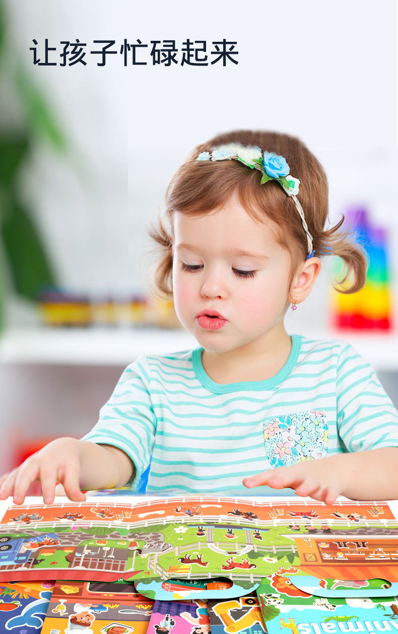 외국 무역 조용한 책 젤리 스티커 어린이 조기 교육 교구 만화 게임 스티커 3~6세 퍼즐 종이 장난감스토어 가기