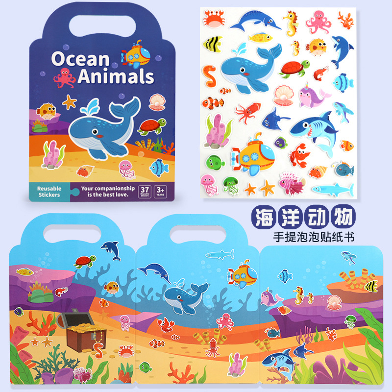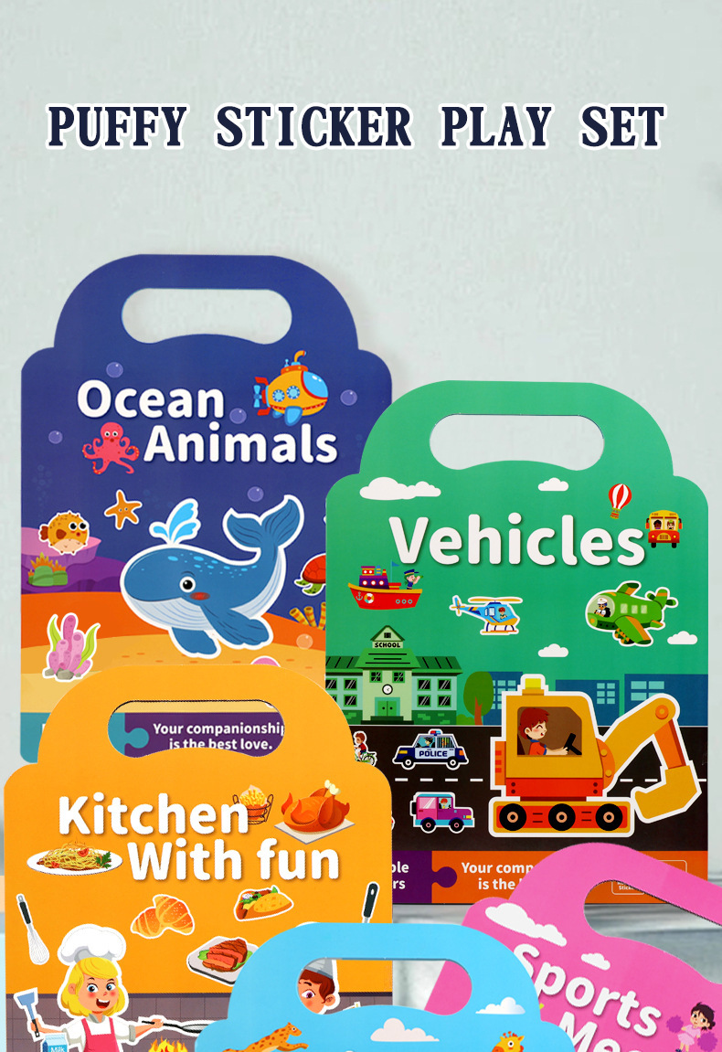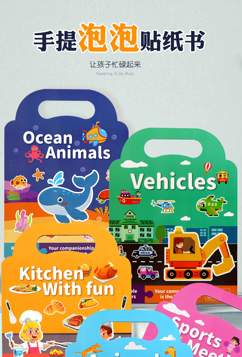 产品说明:手提泡泡贴纸书,贴纸有厚度更立体,表面压痕工艺,美丽质感。