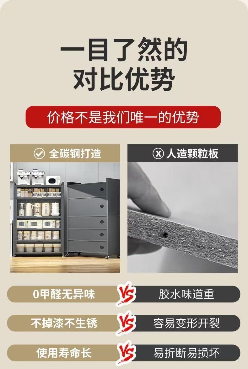 7층 초두꺼운 가전제품 주방 수납선반 다층 캐비닛 홈 다이닝 사이드 캐비닛 주방 바닥 설치가 필요 없는 찬장스토어 가기