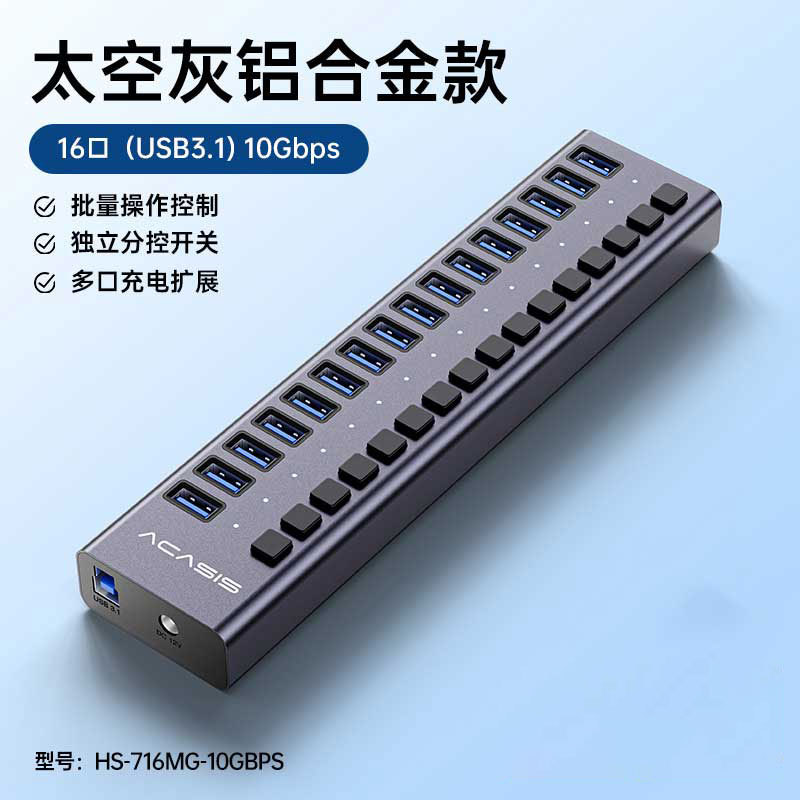 Akasis USB3.1 허브 USB 허브 금속 16포트 10포트 7포트 20포트 분배기 도킹 스테이션