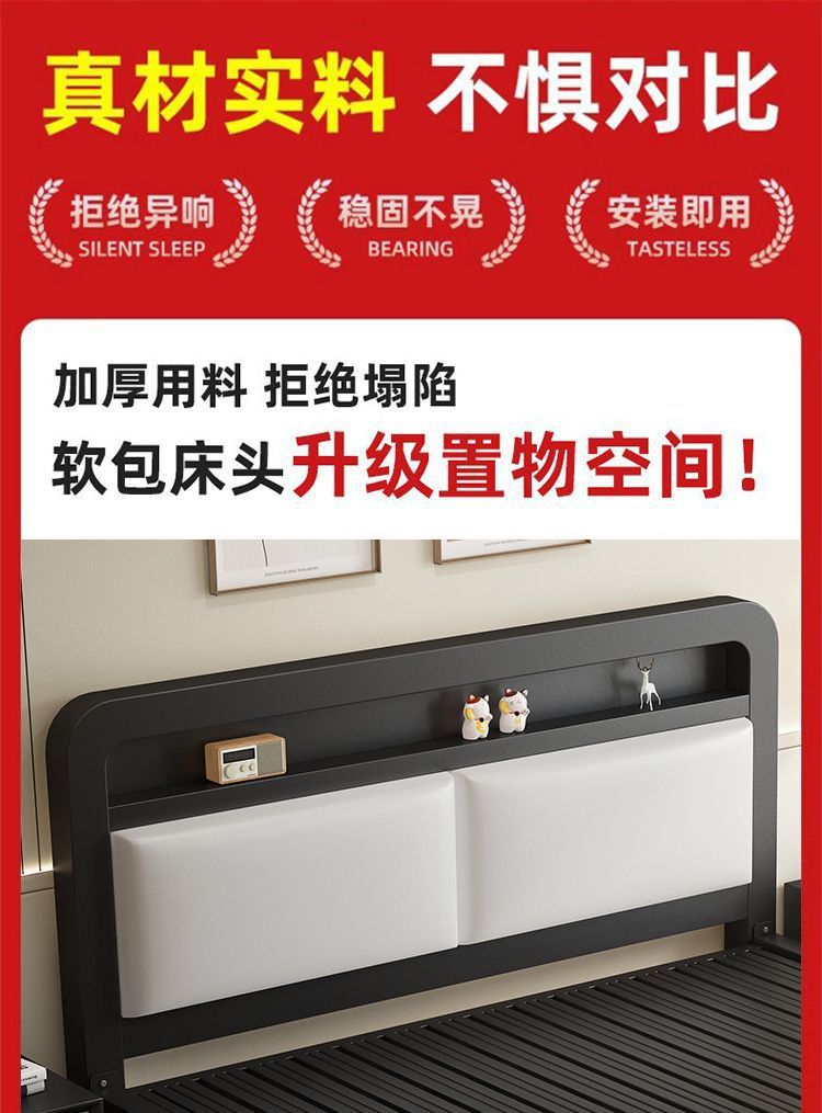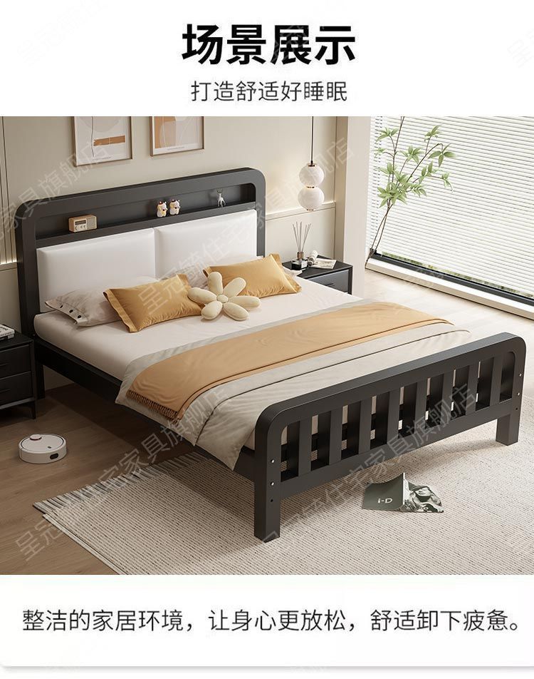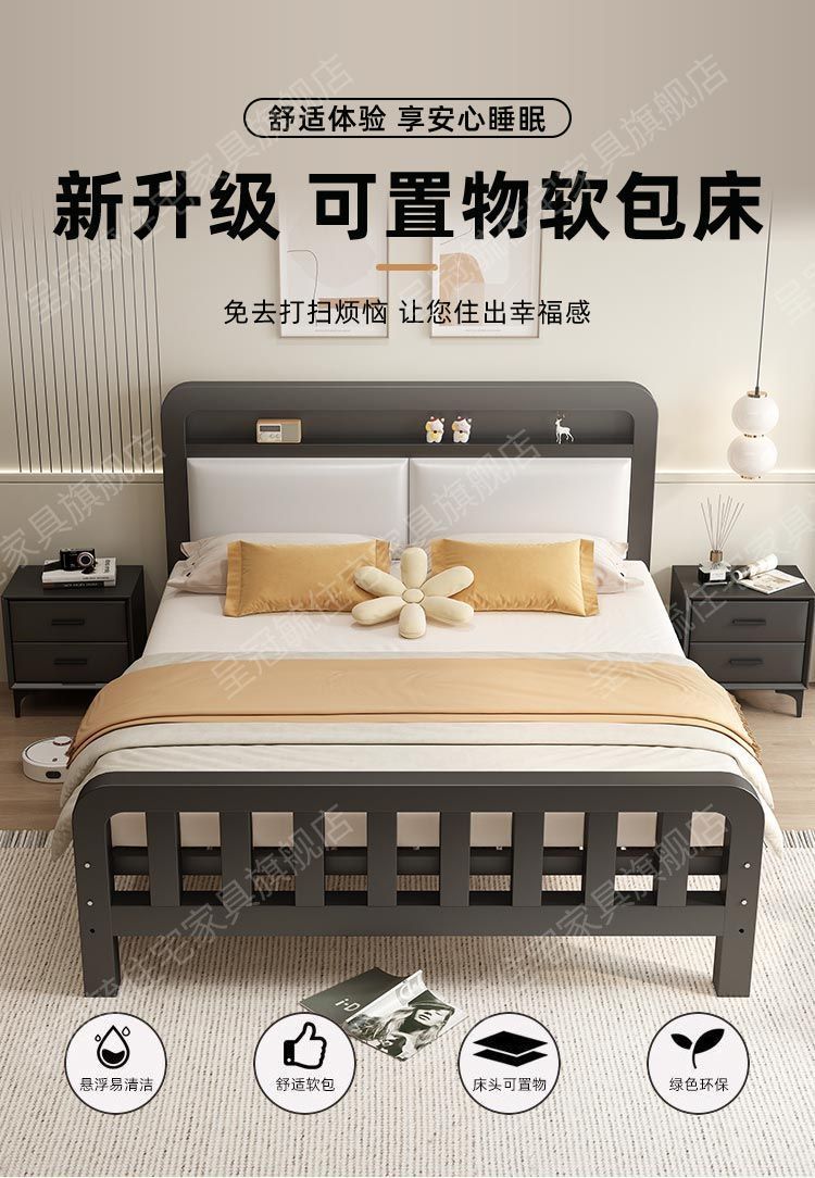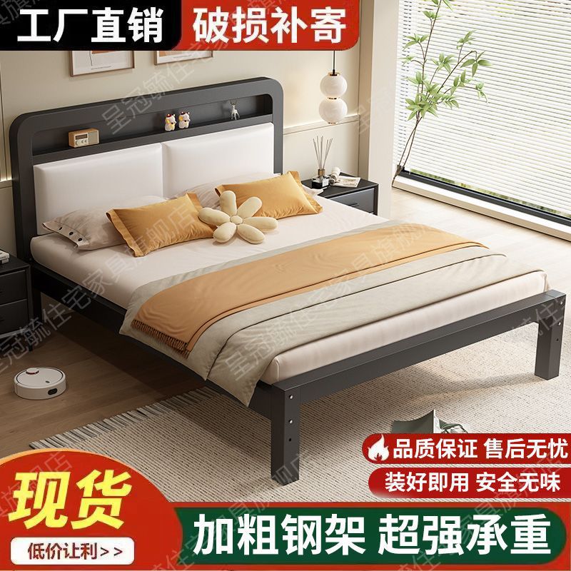 유럽식 철제 침대 1.8m 강화 및 두꺼운 더블 침대 1m 가정용 싱글 침대 스테인레스 스틸 임대 주택 철제 프레임 침대스토어 가기