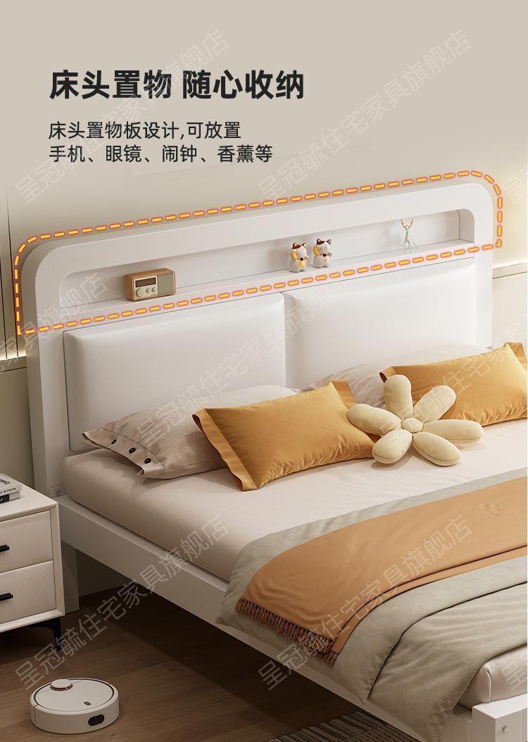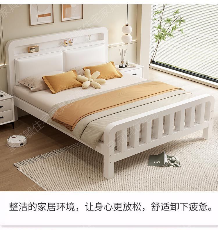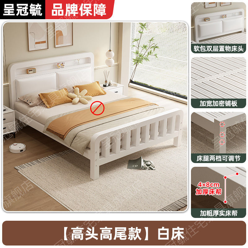 • [하이 헤드 및 플랫 테일 스타일] 화이트 침대(조절 가능)