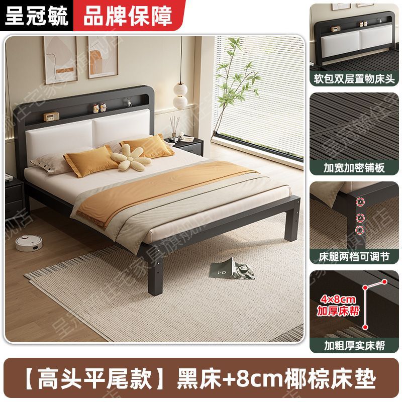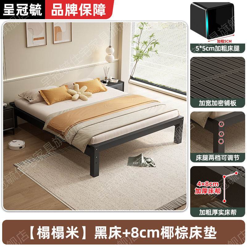 • [하이 헤드 및 플랫 테일 모델] 블랙 침대 + 8cm 코코넛 야자 매트리스