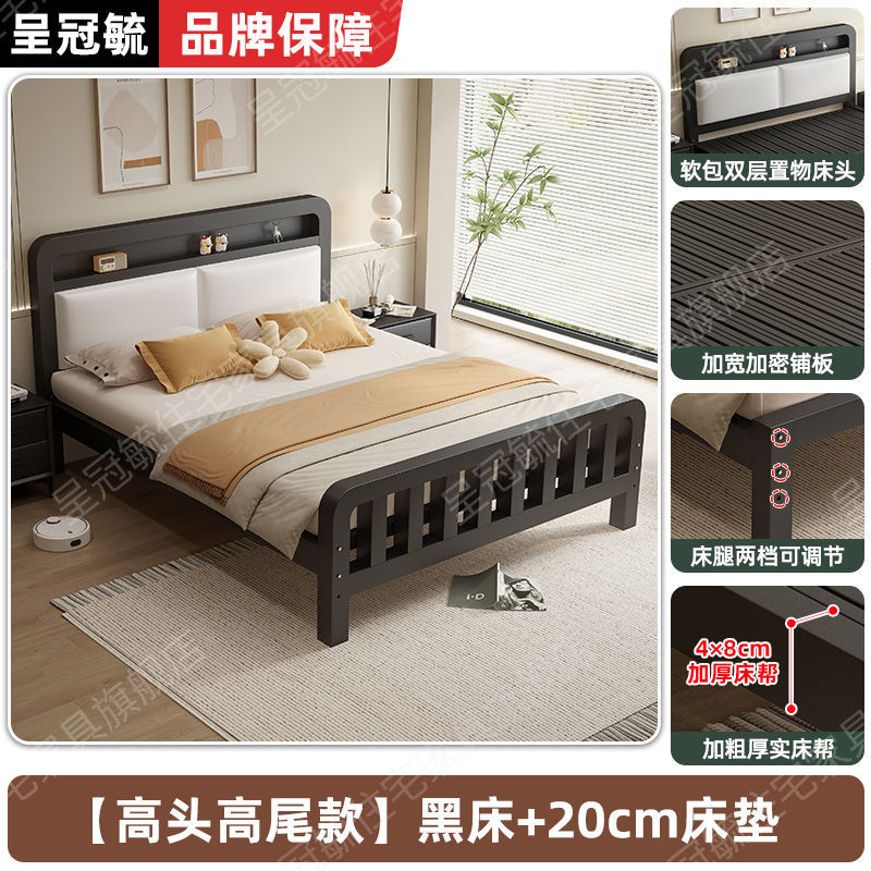 • [하이 헤드 및 플랫 테일 모델] 블랙 침대 + 20cm 매트리스