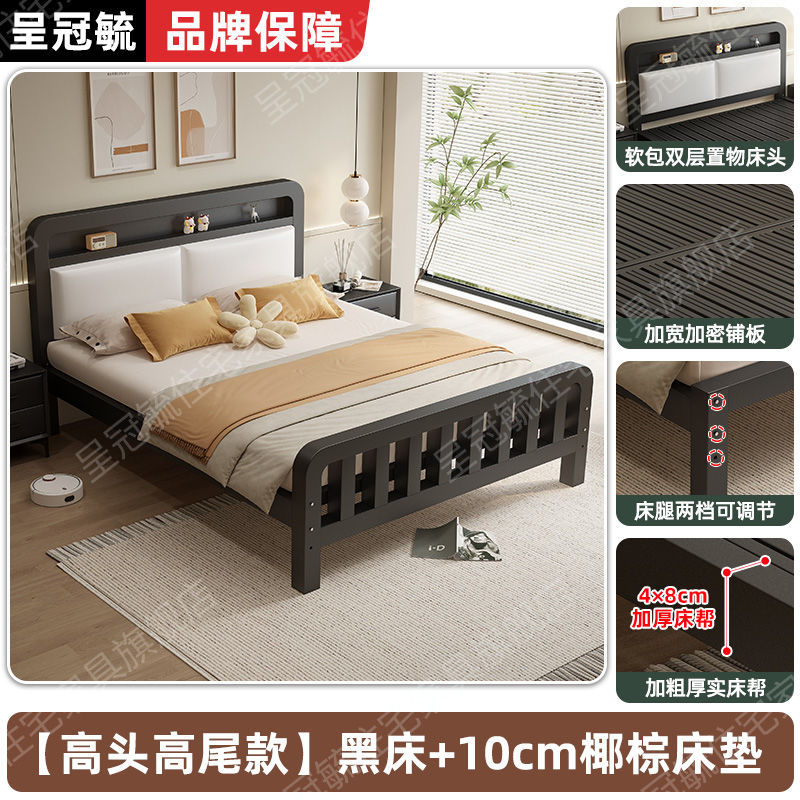 • [하이 헤드 및 플랫 테일 모델] 블랙 침대 + 10cm 코코넛 야자 매트리스