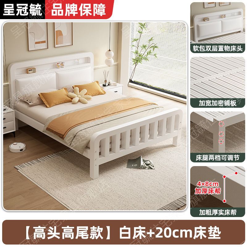 • [하이 헤드 플랫 테일 모델] 화이트 침대 + 20cm 매트리스