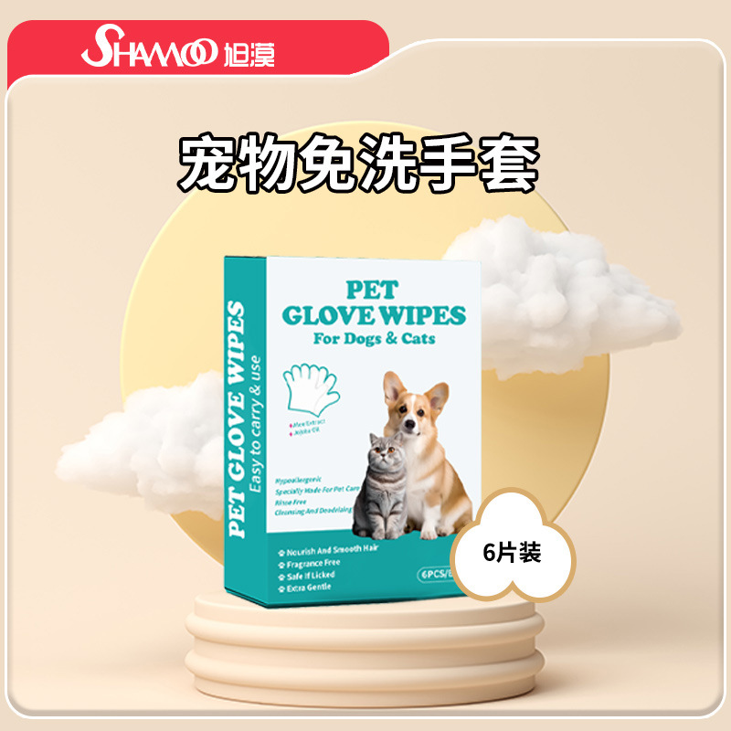 선호하는 대외 무역 국경 간 애완 동물 용품 일회용 장갑 고양이와 개 목욕 청소 드라이 클리닝 물티슈 장갑 탈취제