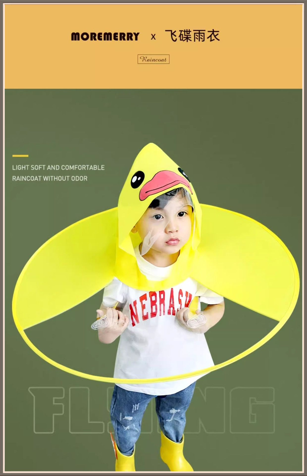 어린이 UFO 비옷 작은 노란색 오리 망토 우산 모자 Douyin 남성과 여성 유치원 어린이 인터넷 연예인 아기 비옷스토어 가기