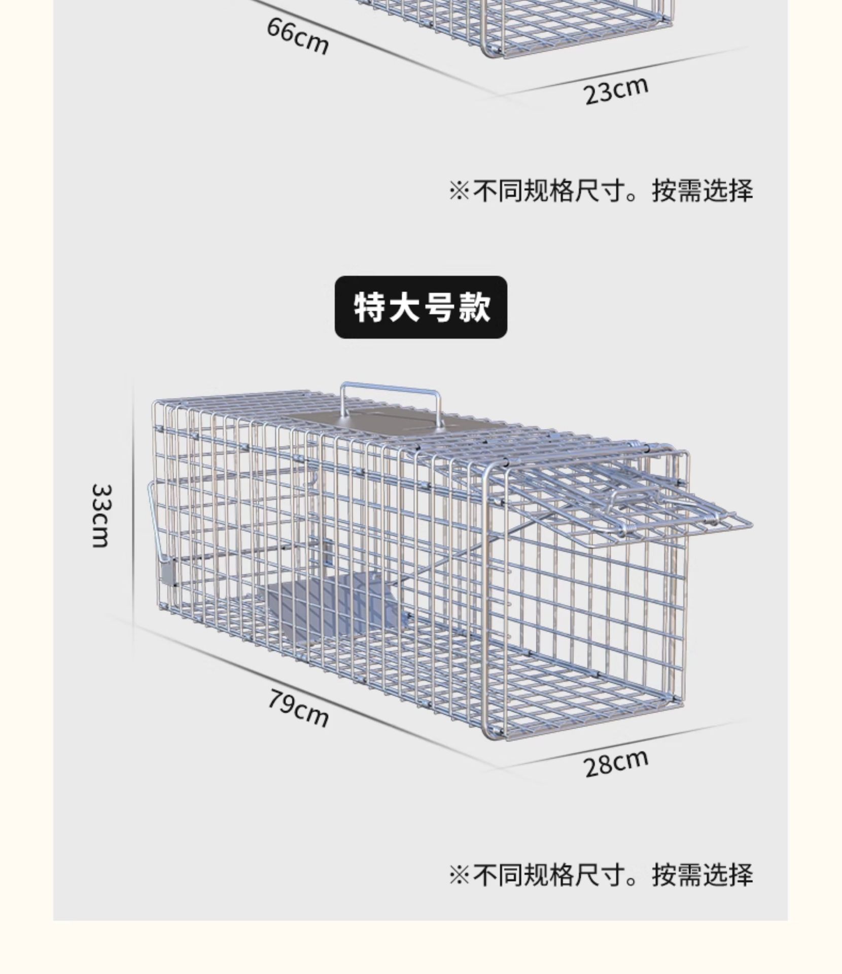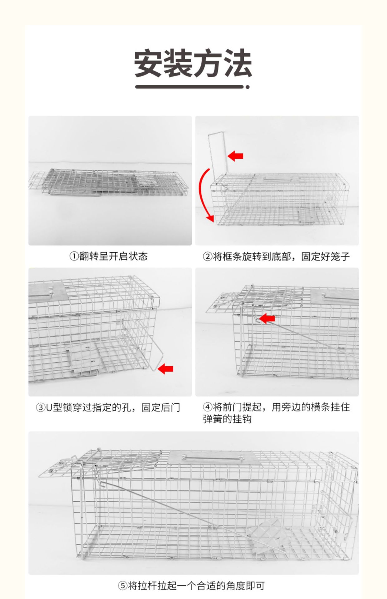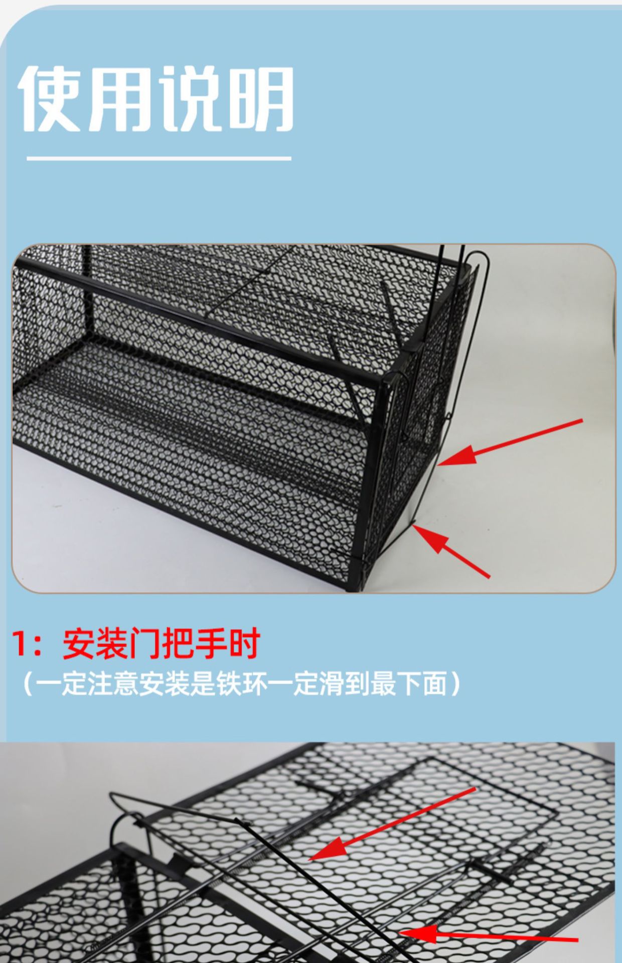• 교활한 고양이를 잡기 위해 특별히 고안된 두꺼운 고양이 케이지(고양이 케이지 6번)는 소시지 1개 + 예비 스프링 2개를 담을 수 있습니다.