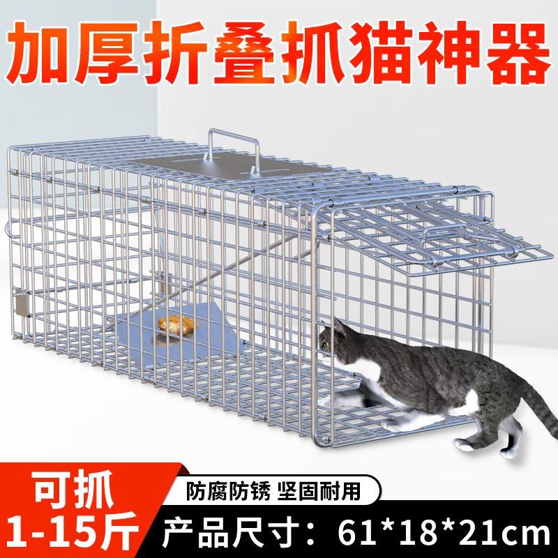 이자일레 아웃도어 신형 자동 고양이 포획 케이지 대형 두꺼운 아연도금 고양이 케이지 인도적 구조