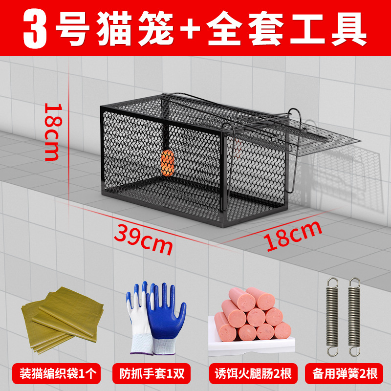 • 고양이 트랩 도구 전체 세트(특대형 고양이 트랩 1개 + 긁힘 방지 장갑 1개 + 고양이 짠 가방 1개 + 스프링 2개 + 햄 소시지 2개)