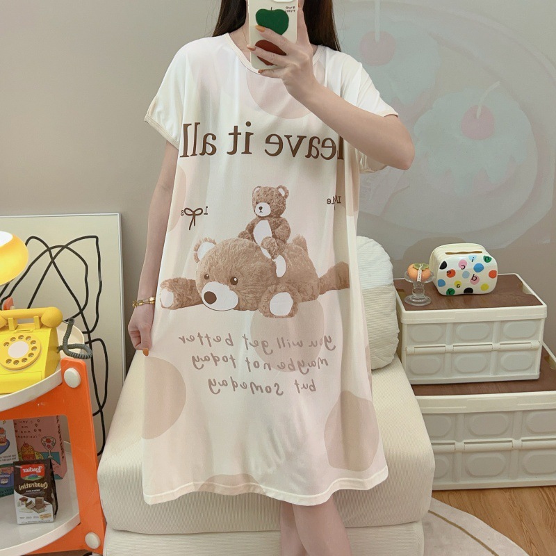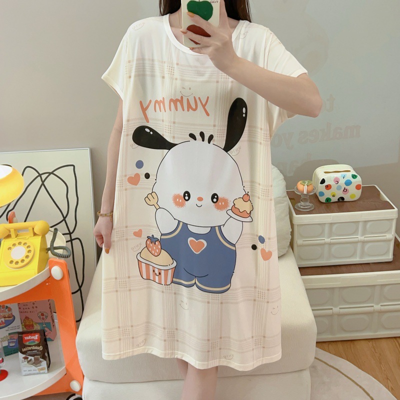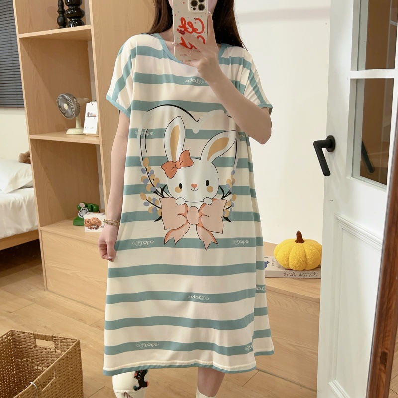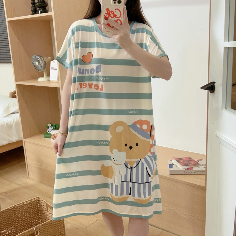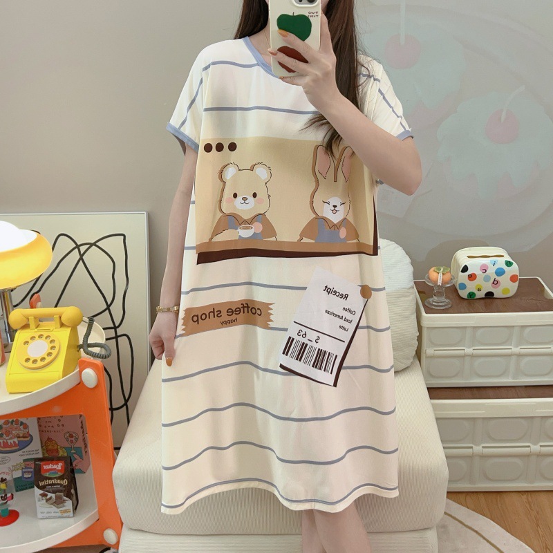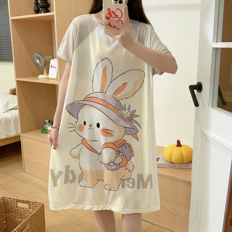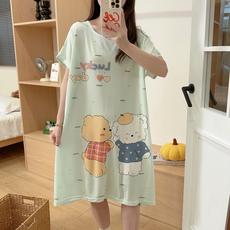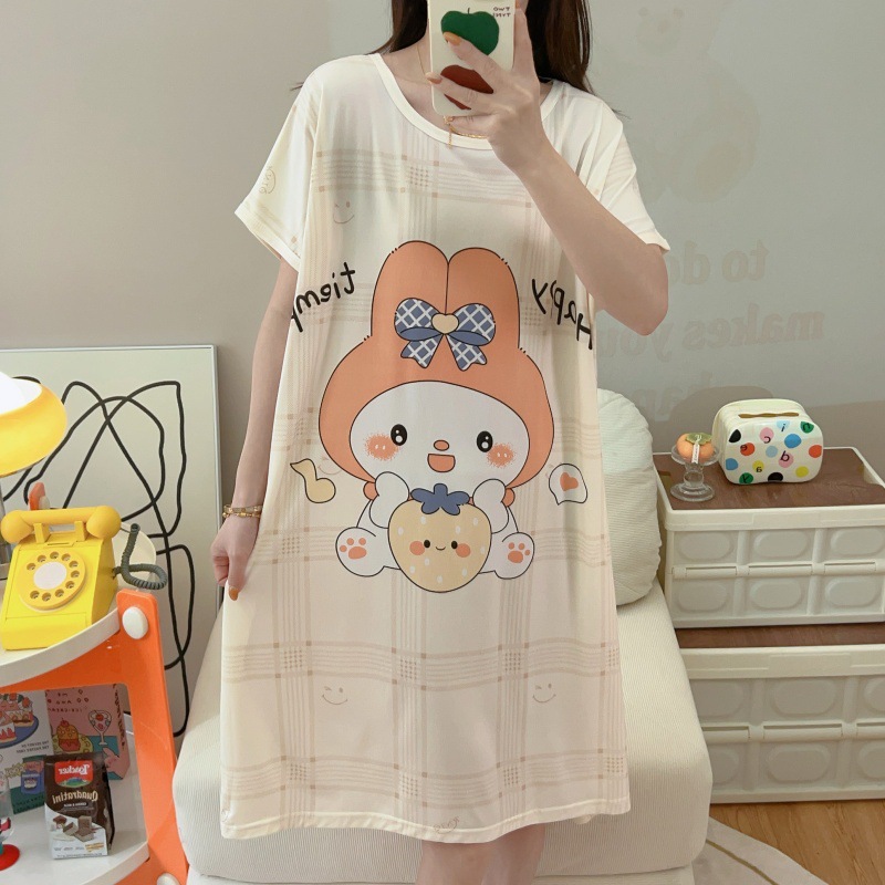 여성용 잠옷 여름 2025 새로운 중간 길이 잠옷 우유면 한국어 버전 만화 학생 잠옷은 집 밖에서 착용할 수 있습니다