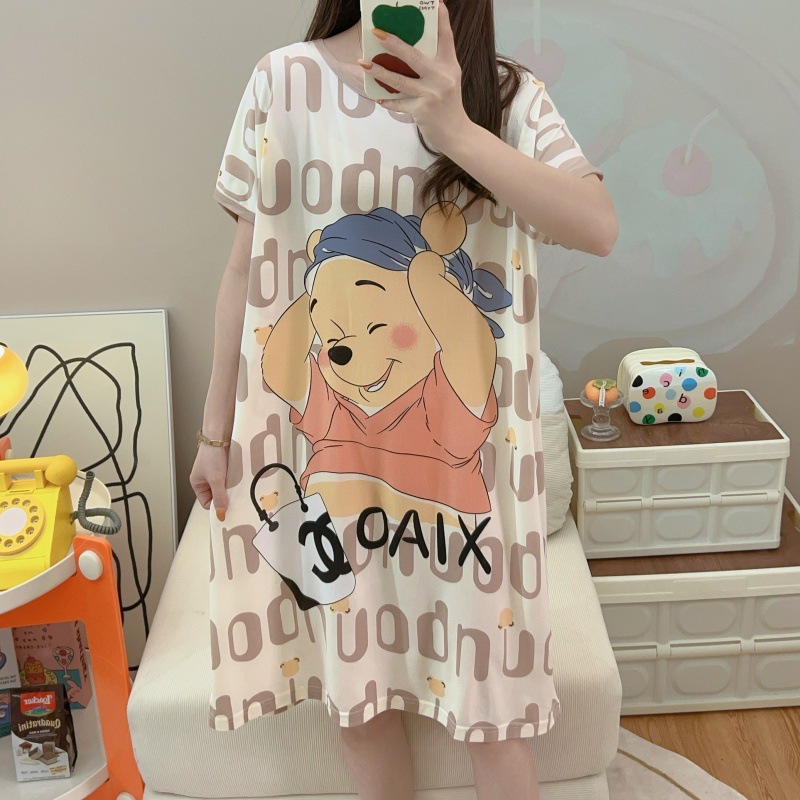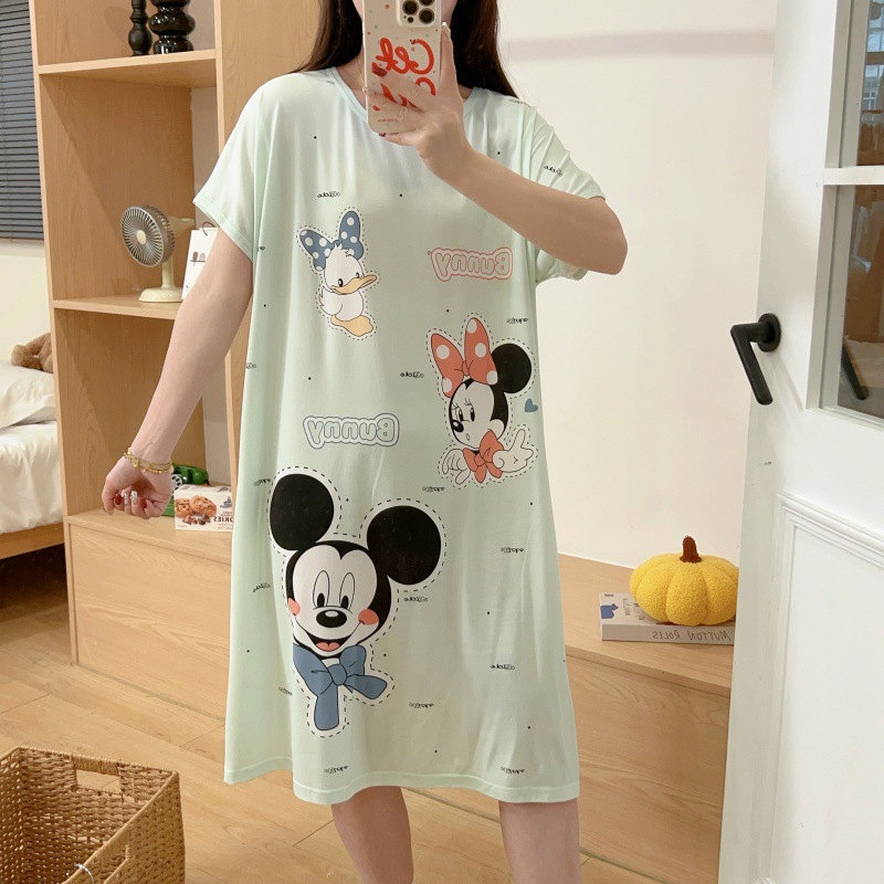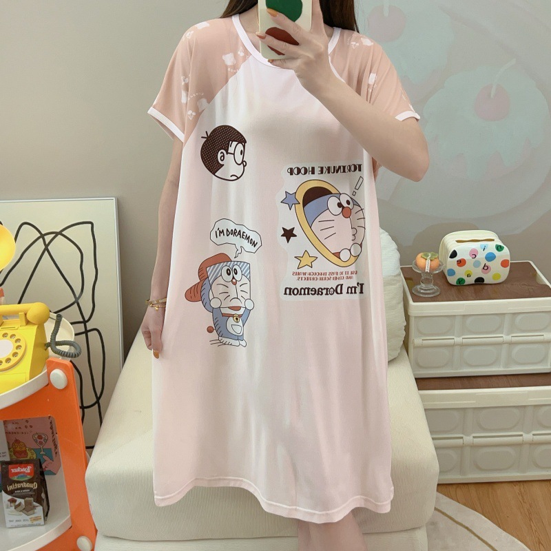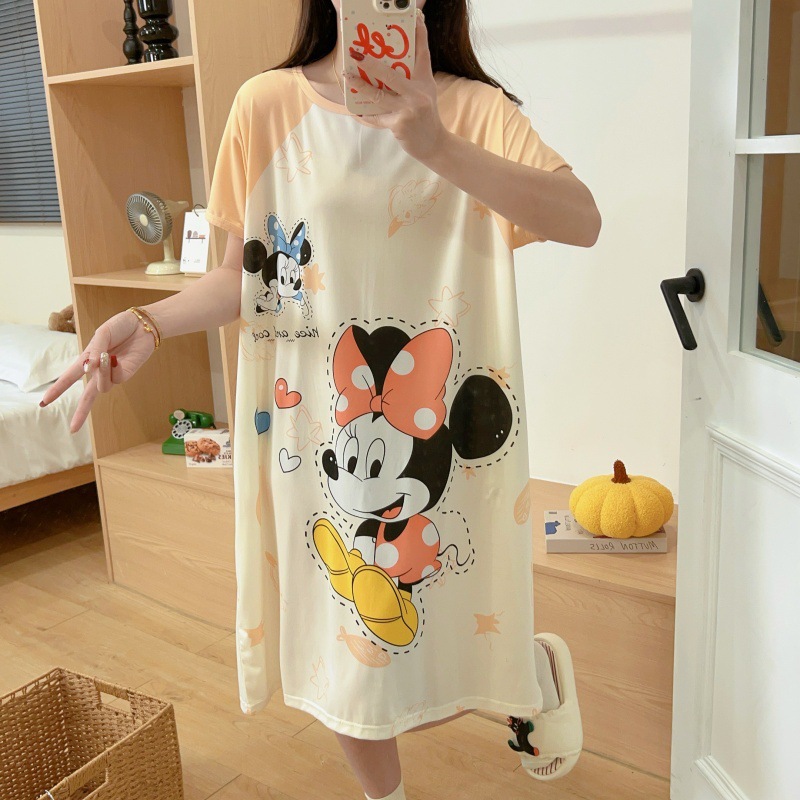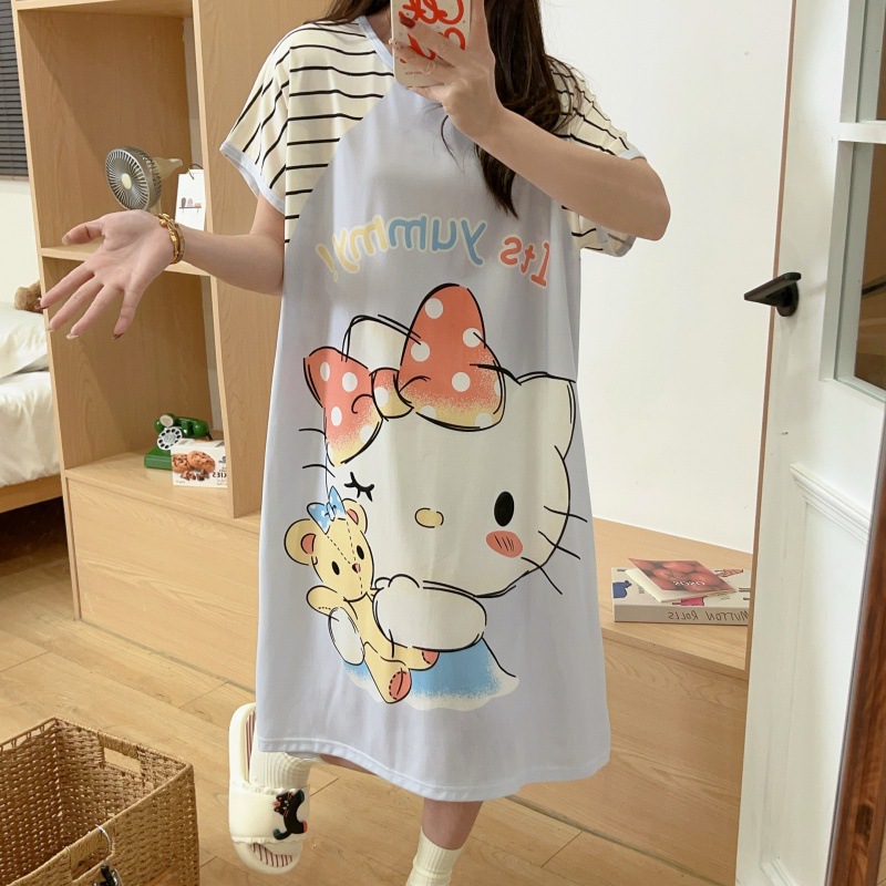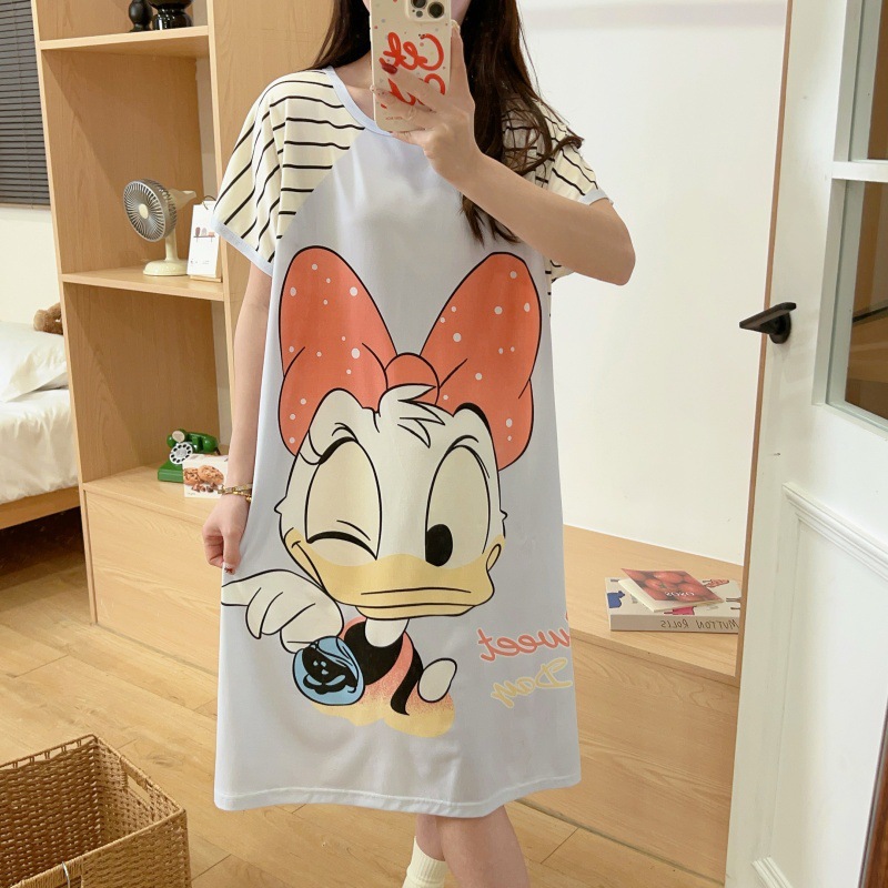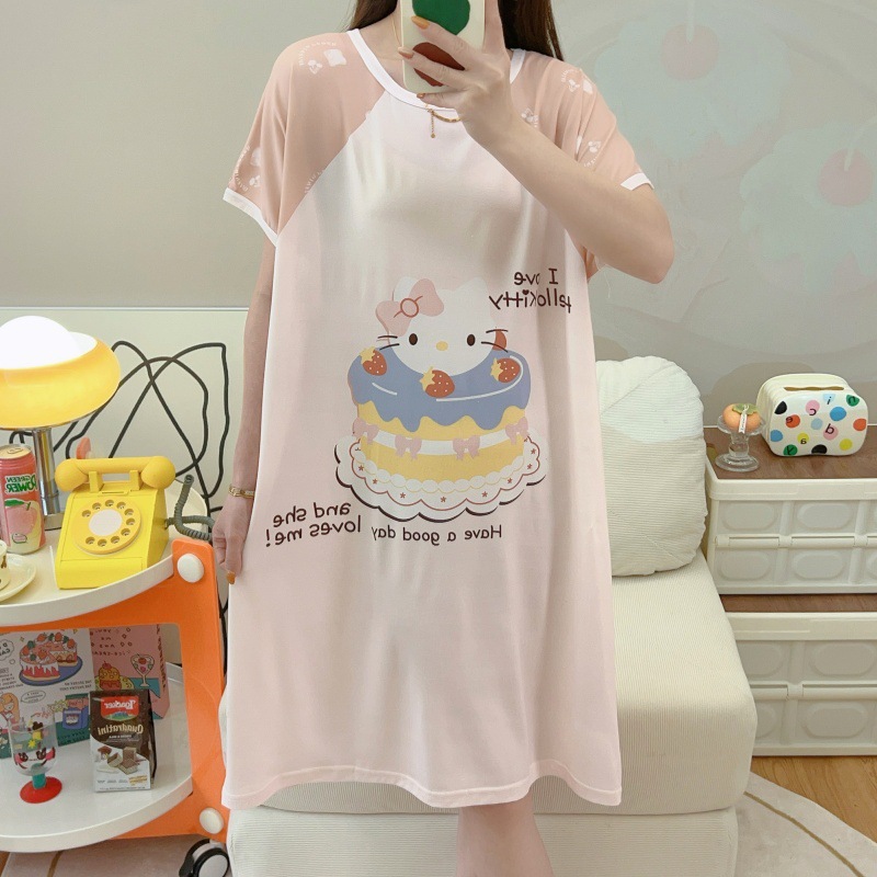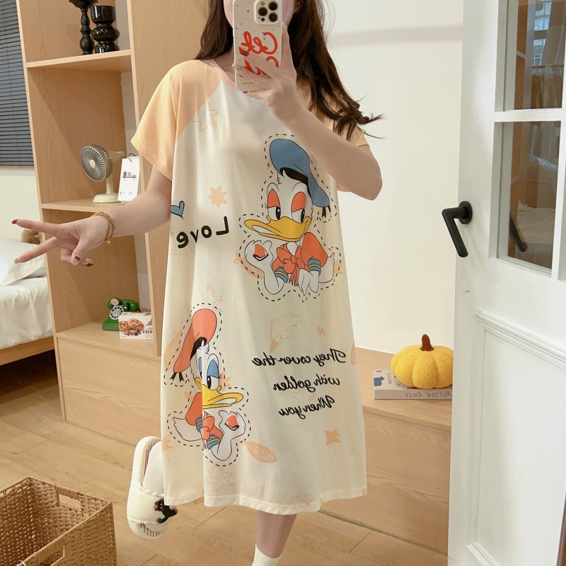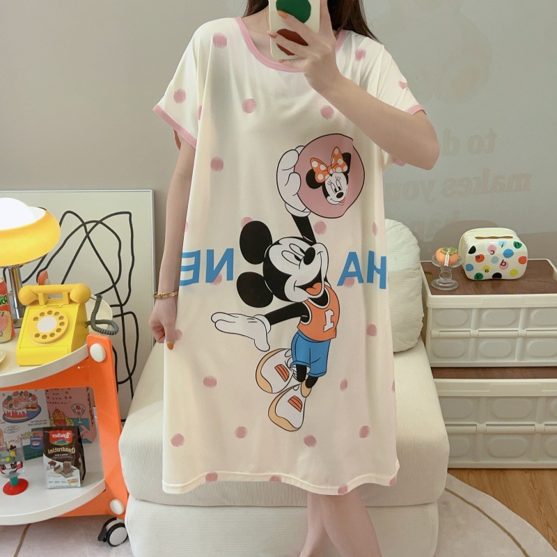 여성용 잠옷 여름 2025 새로운 중간 길이 잠옷 우유면 한국어 버전 만화 학생 잠옷은 집 밖에서 착용할 수 있습니다