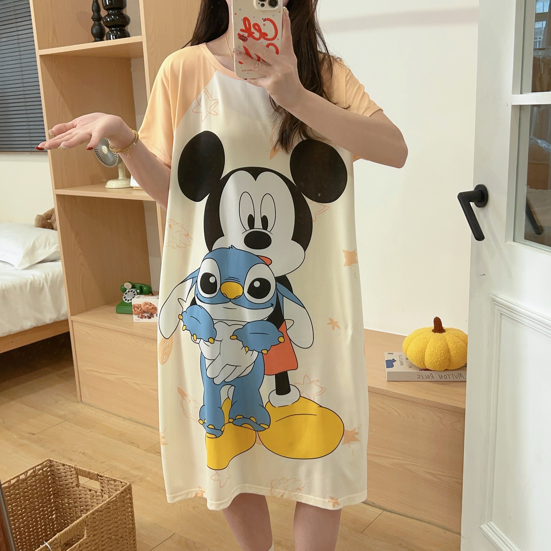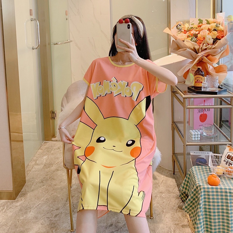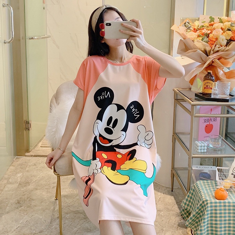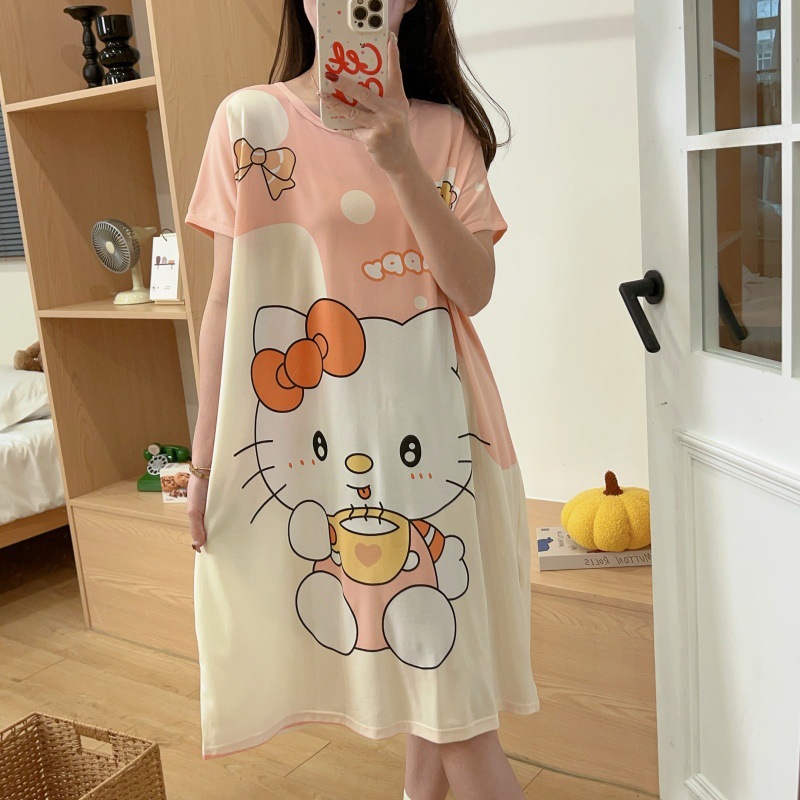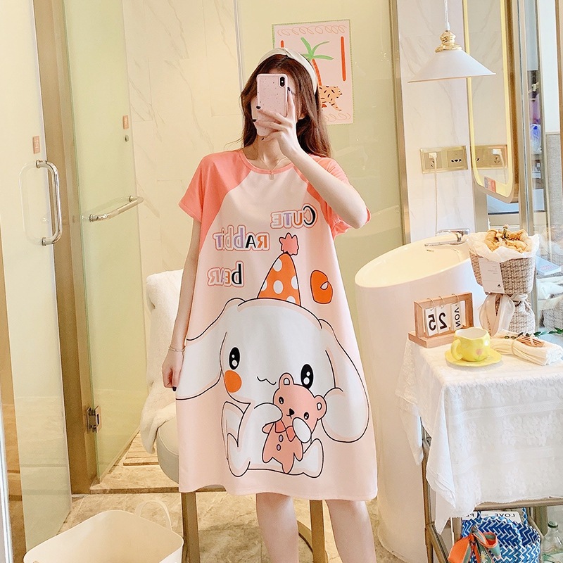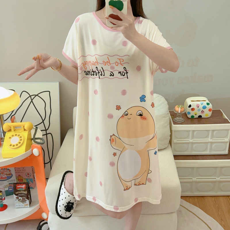 여성용 잠옷 여름 2025 새로운 중간 길이 잠옷 우유면 한국어 버전 만화 학생 잠옷은 집 밖에서 착용할 수 있습니다스토어 가기