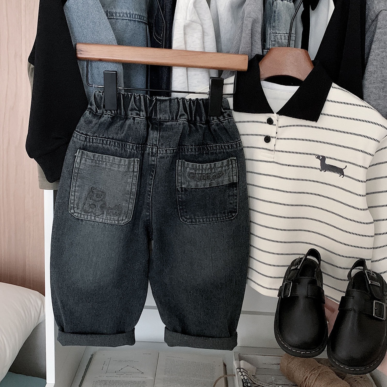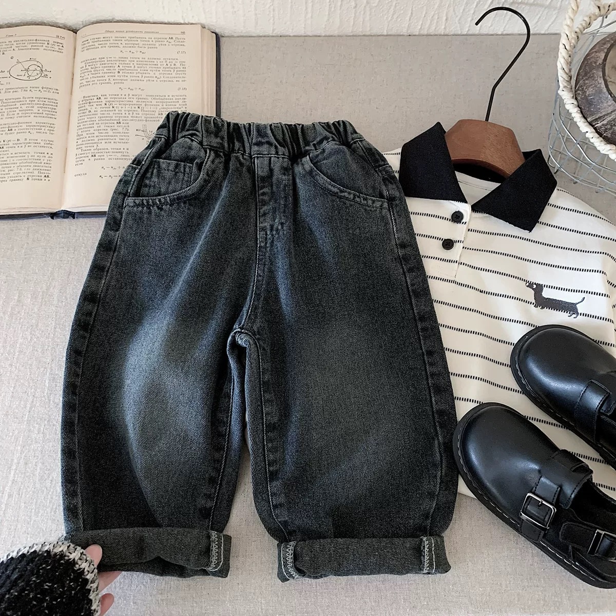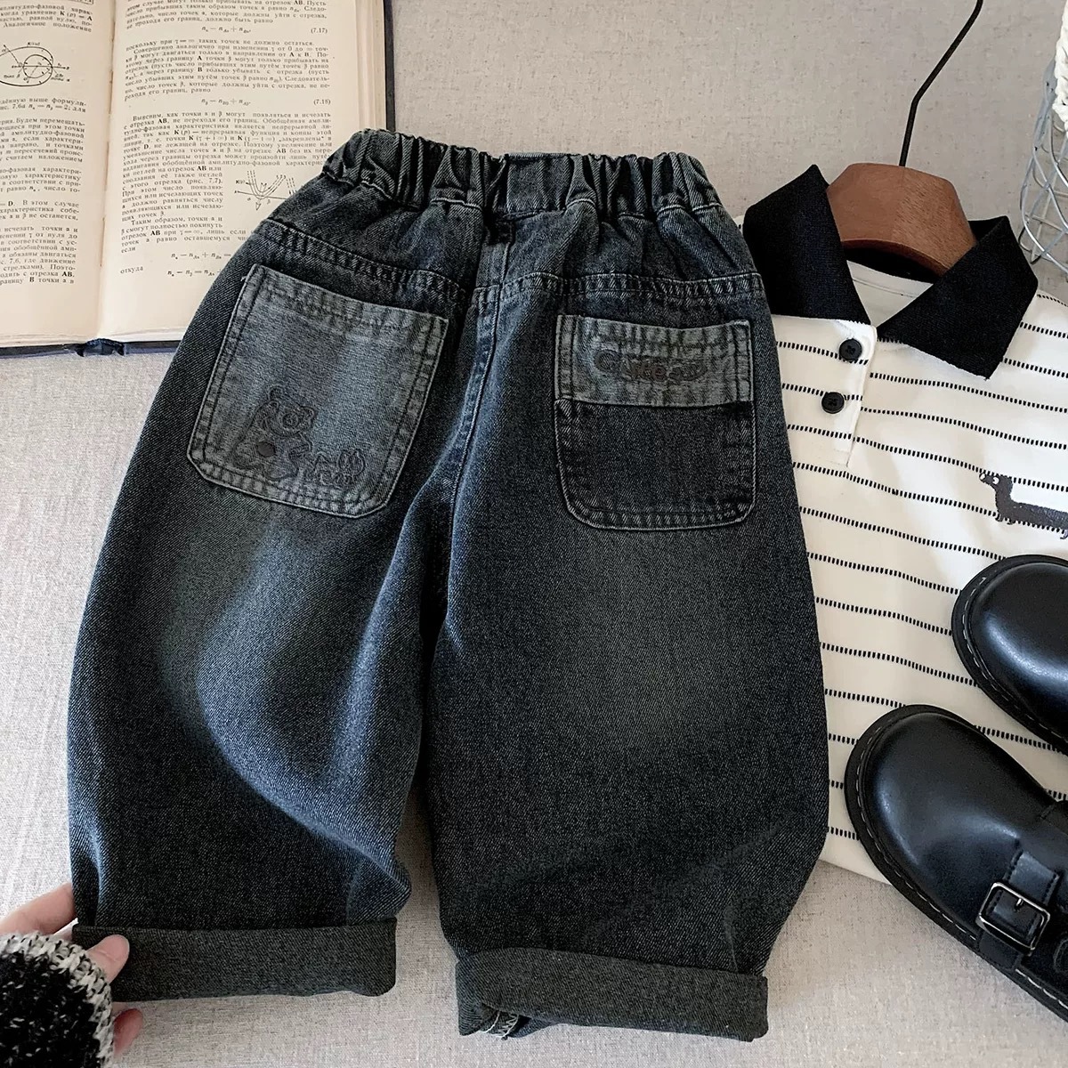 남아용 청바지, 가을 아동용 청바지, 패셔너블하고 캐주얼한 스트리트 스타일, 어린 소년 아빠 바지스토어 가기