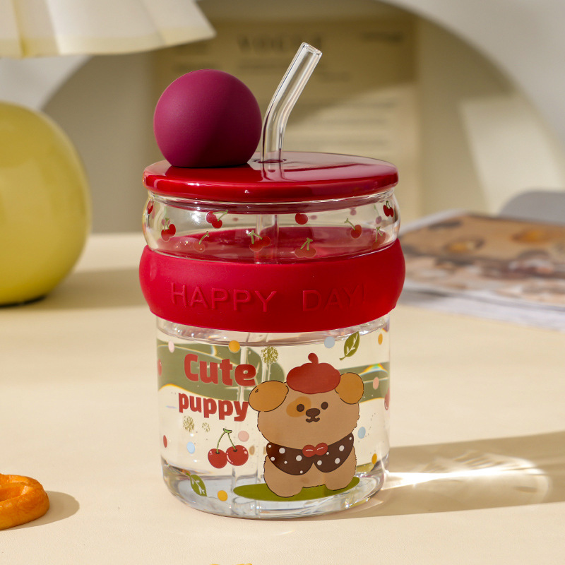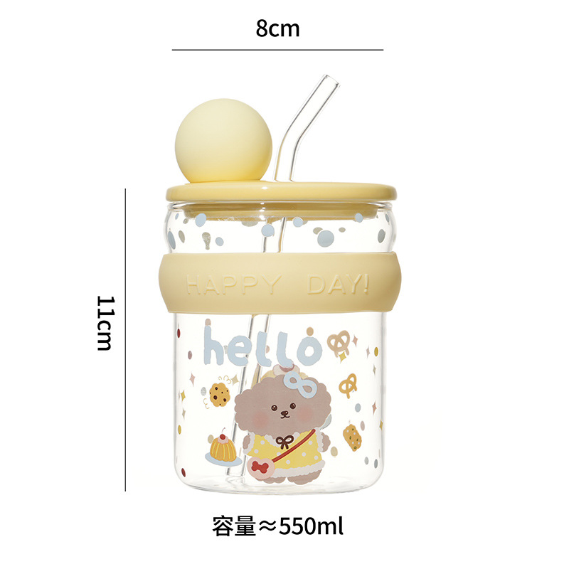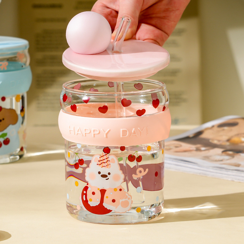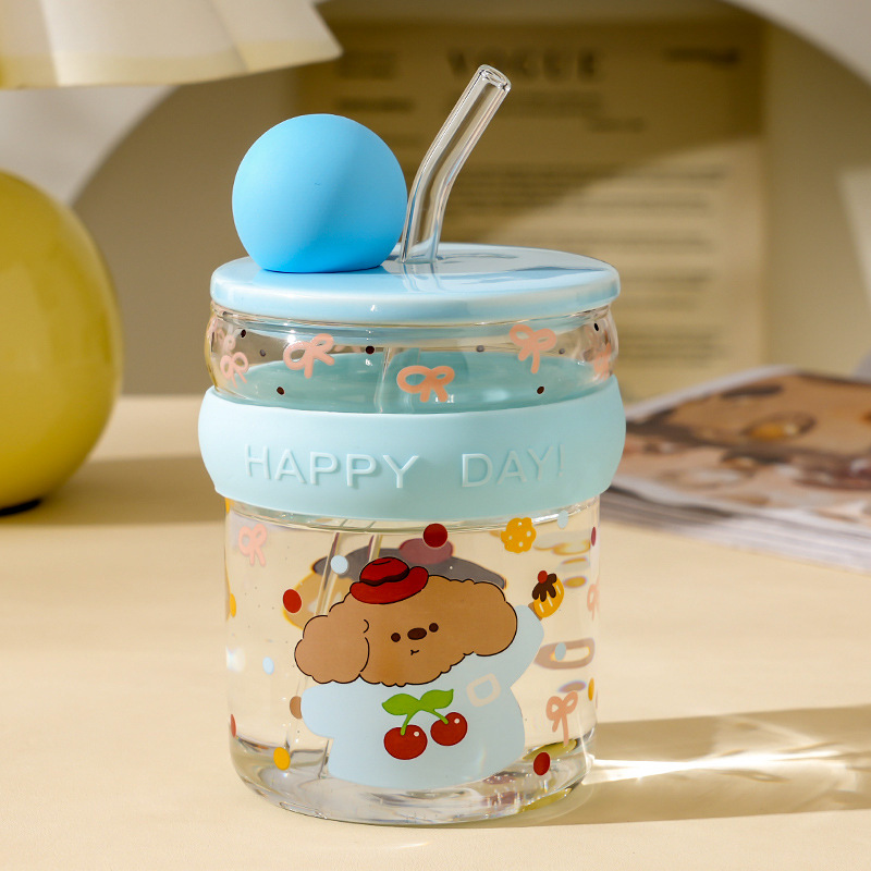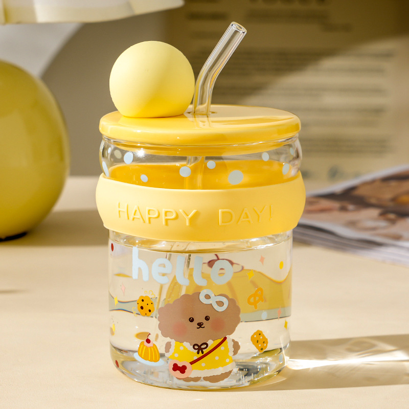 귀여운 동물 유리 새로운 고급 대용량 밀짚 컵 학생 만화 휴대용 내열 밀짚 컵