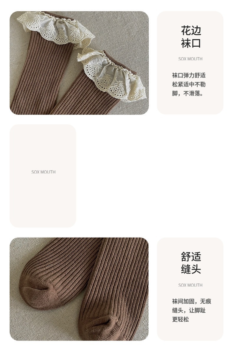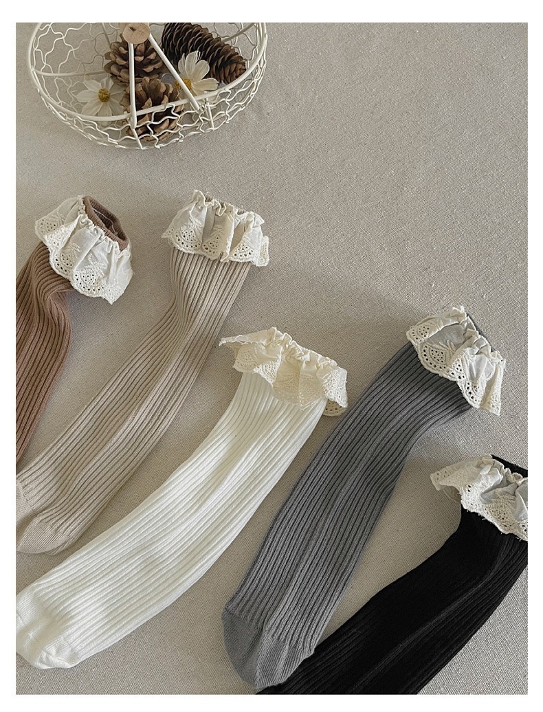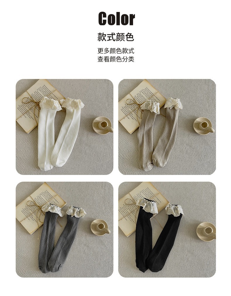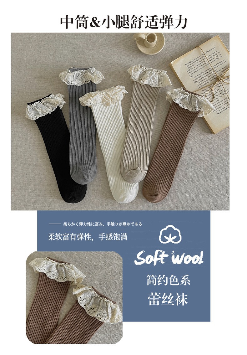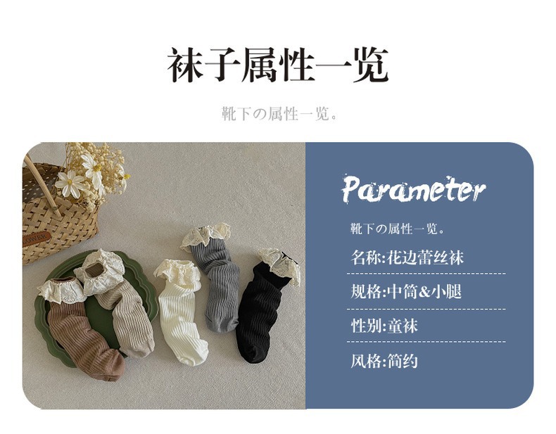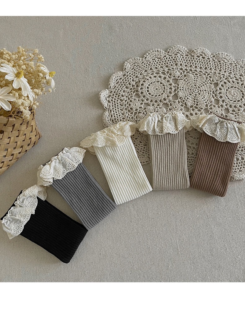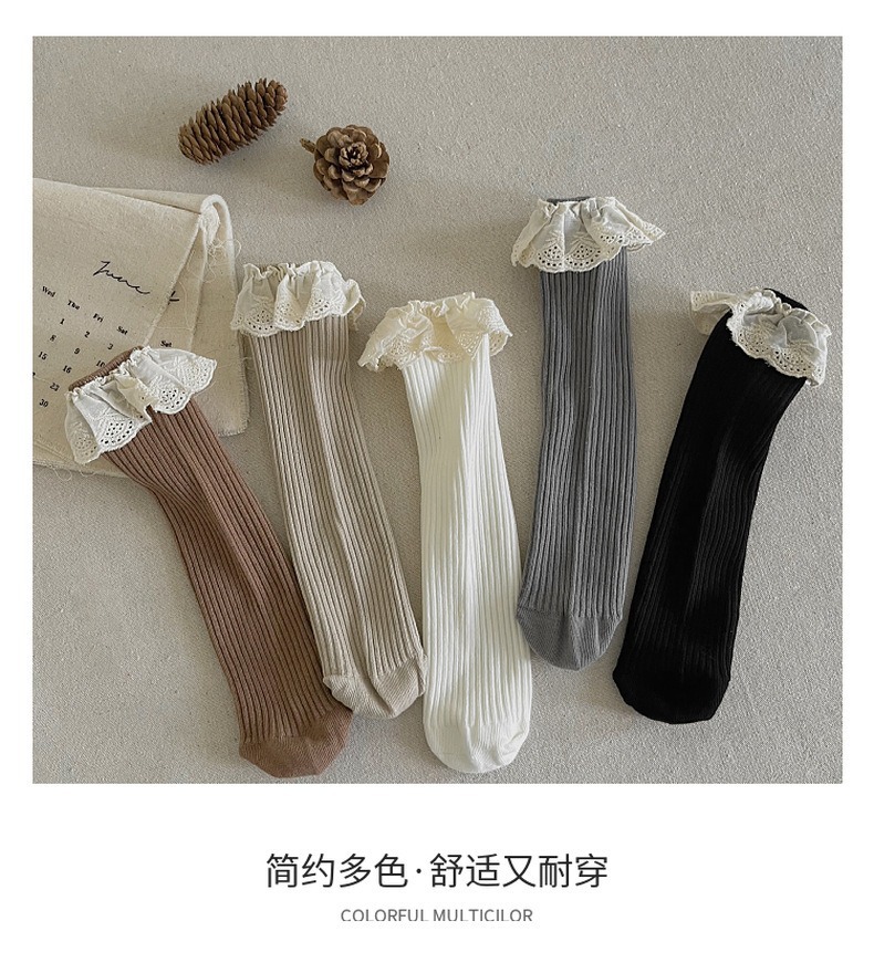 봄과 가을 어린이 새로운 한국 스타일 레이스 솔리드 컬러 종아리 양말 소녀 양말 굽없는 중간 높이 아기 다용도 면화