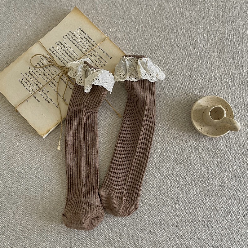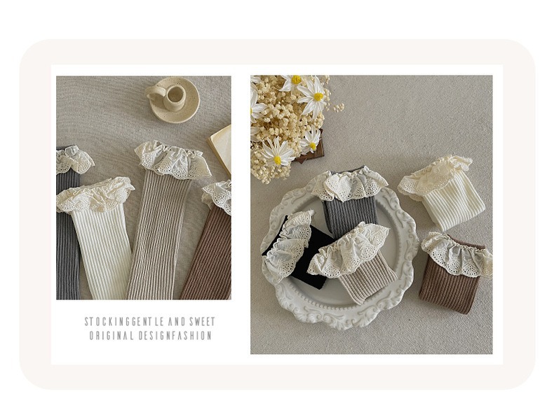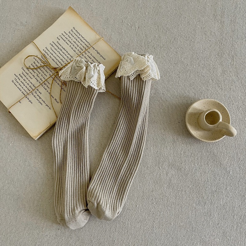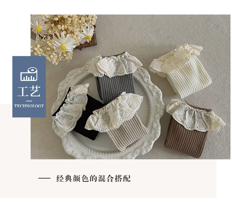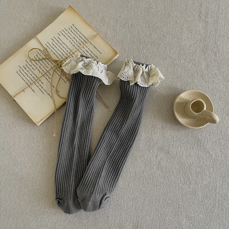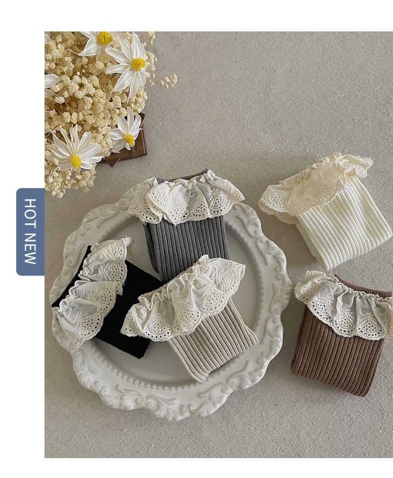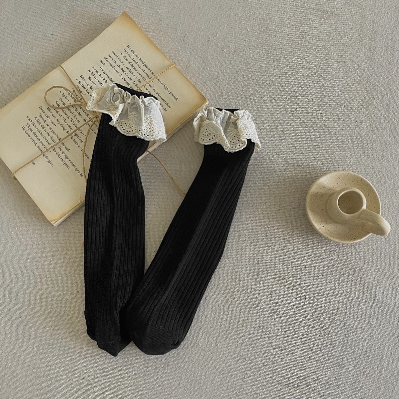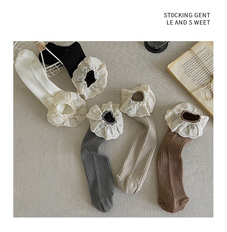 봄과 가을 어린이 새로운 한국 스타일 레이스 솔리드 컬러 종아리 양말 소녀 양말 굽없는 중간 높이 아기 다용도 면화
