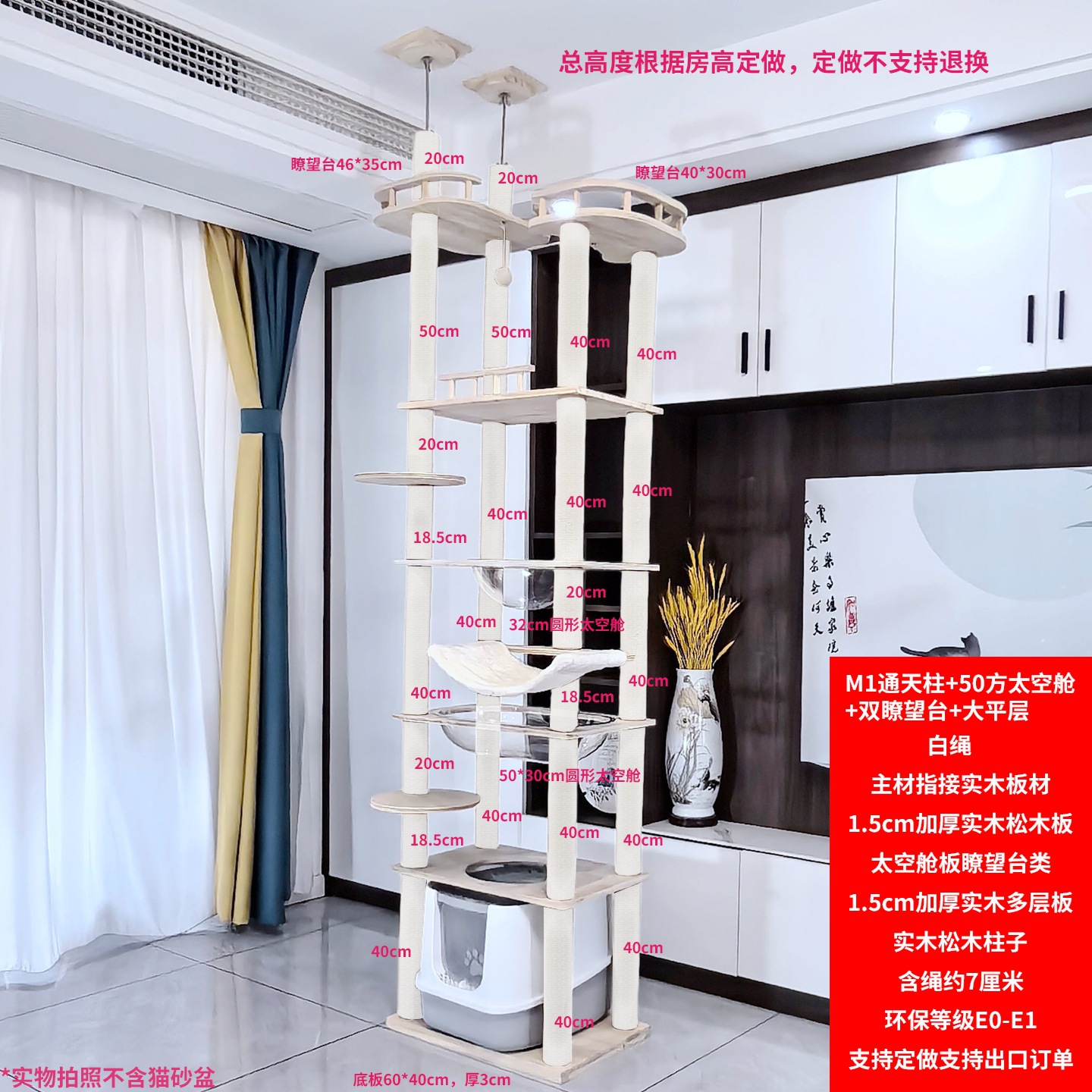 • M1 황마 로프 하늘 기둥 + 50평방미터 공간 캡슐 + 이중 관측소 + 대형 평면 층