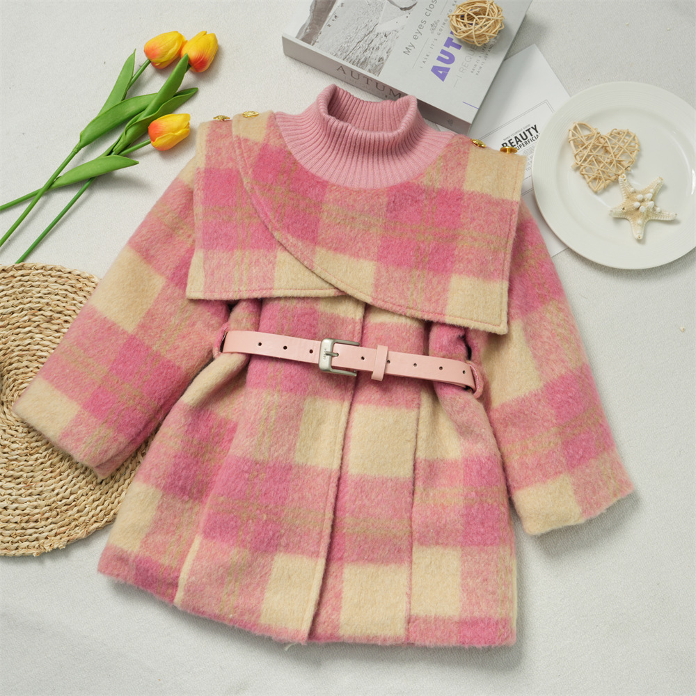 2025년 신상 여아 모직 코트 겨울 의류 아동복 플러스 벨벳 두꺼운 패션 영국 스타일 여아 코트 고급