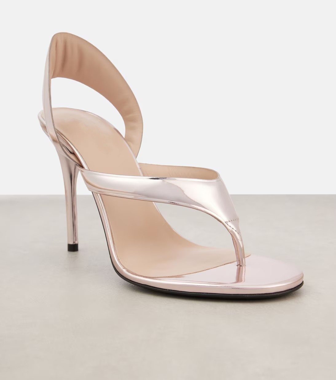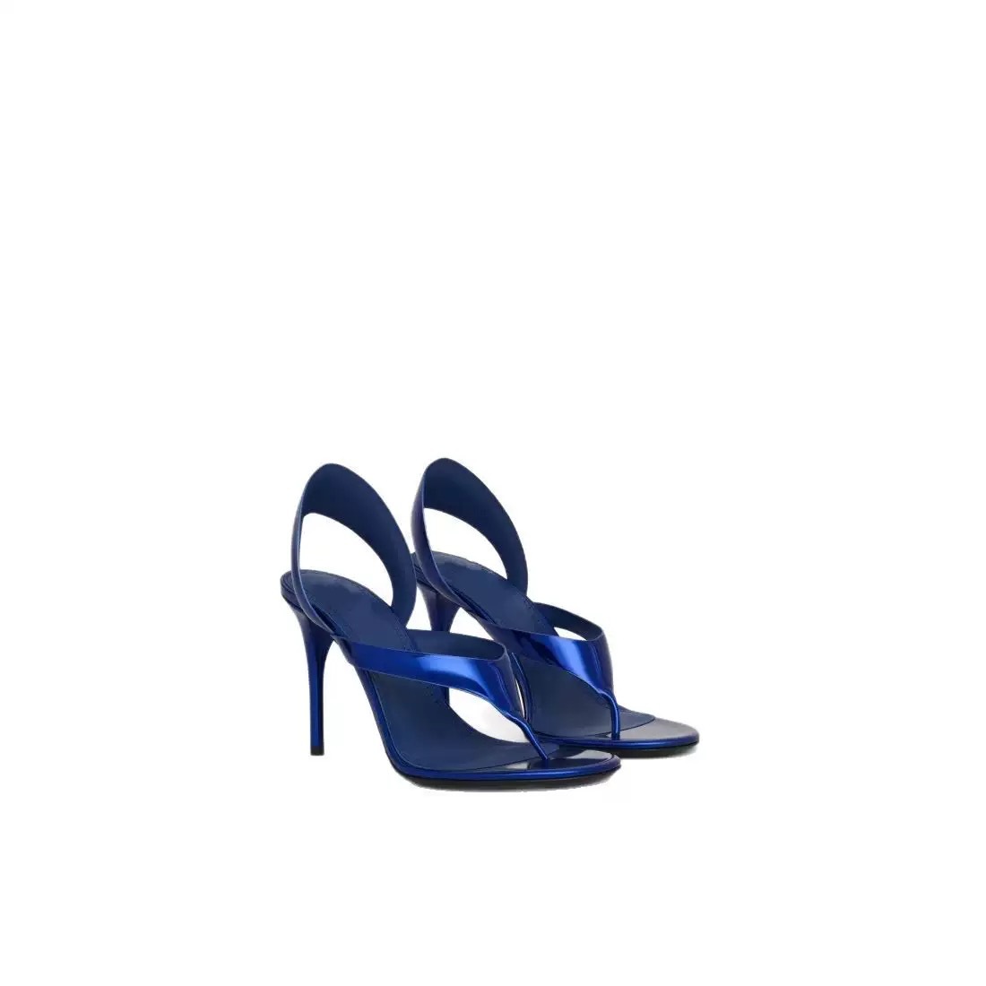 유럽과 미국의 새로운 스타일의 스틸레토 힐, 둥근 발가락, 중공 뒷끈, 골드 광택 가죽 슬립온 플립플롭, 여성용 오픈 토 로마 샌들스토어 가기