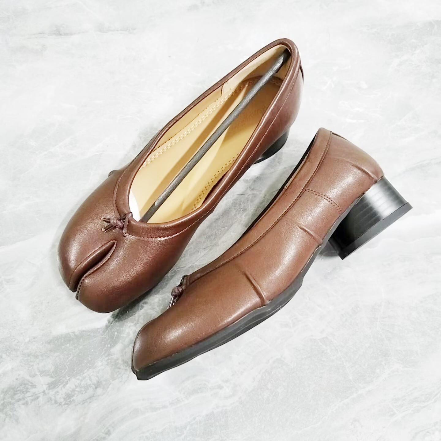 여성용 스플릿 토 슈즈 2025 봄 신작 레트로 펌프스 두꺼운 굽 주름 돼지발톱 신발 여성용 발레 슬립온 슈즈