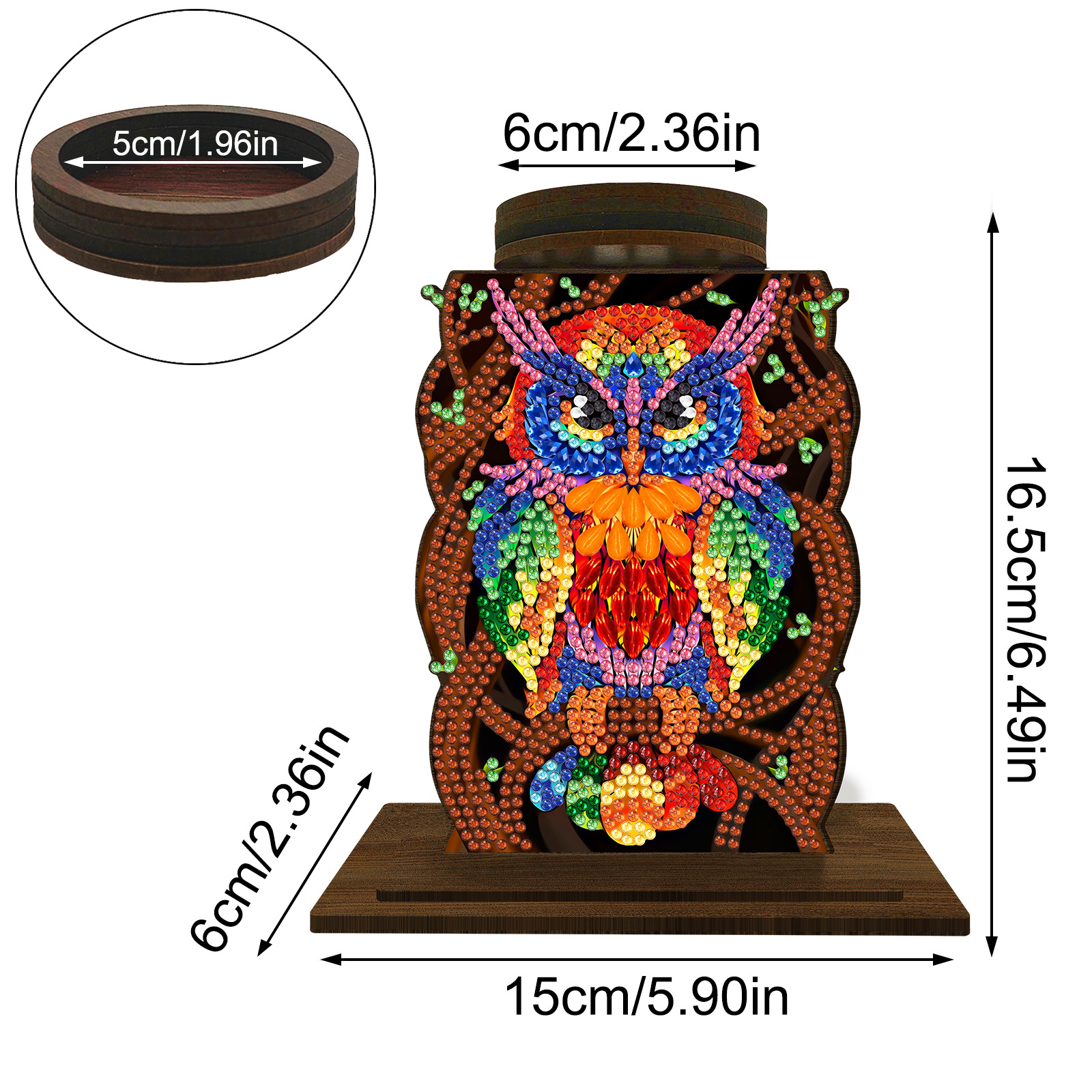 配件包含:喷绘木板(需双面点钻)x1 配套木质圆形烛台面x1 木质双层底座x1 钻包x1 亚克力散珠x1 点钻工具包x1