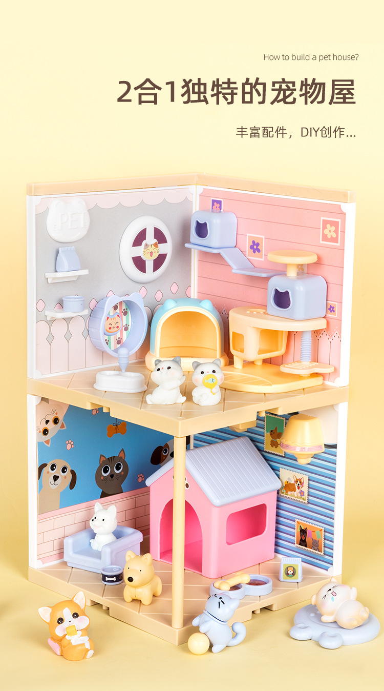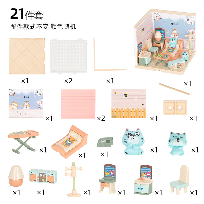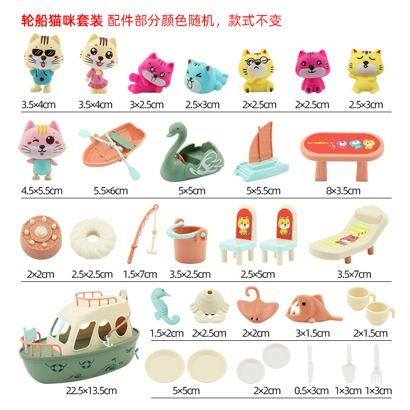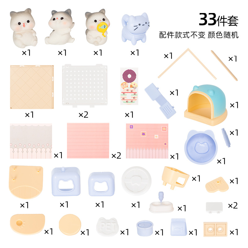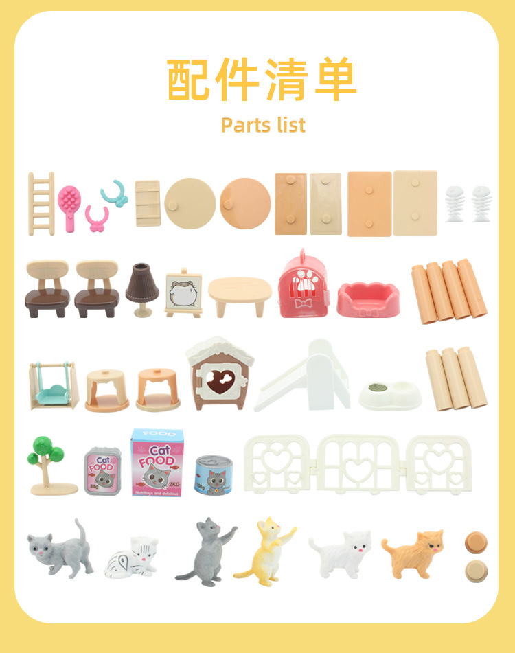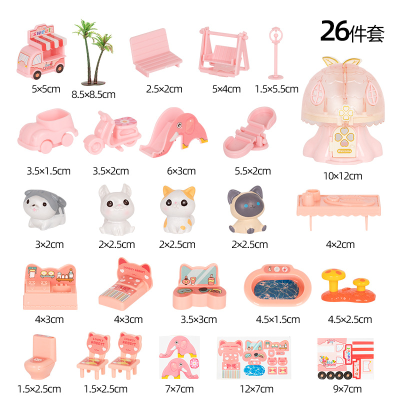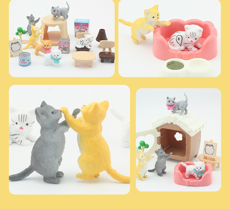 Longze 어린이 놀이 집 미니 가구 고양이 주방 장면 캐빈 하우스 애완 동물 소녀 장난감
