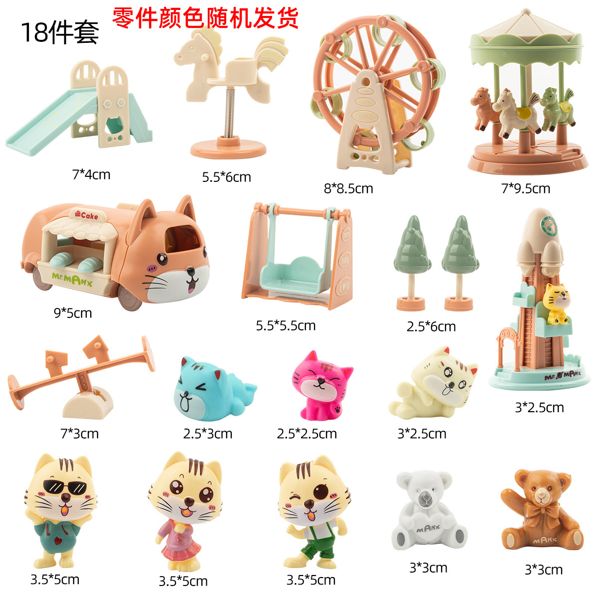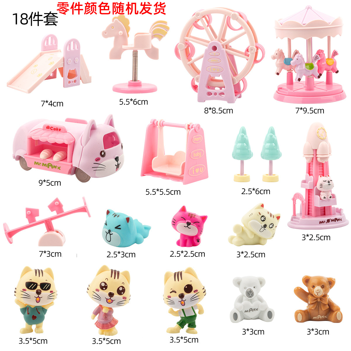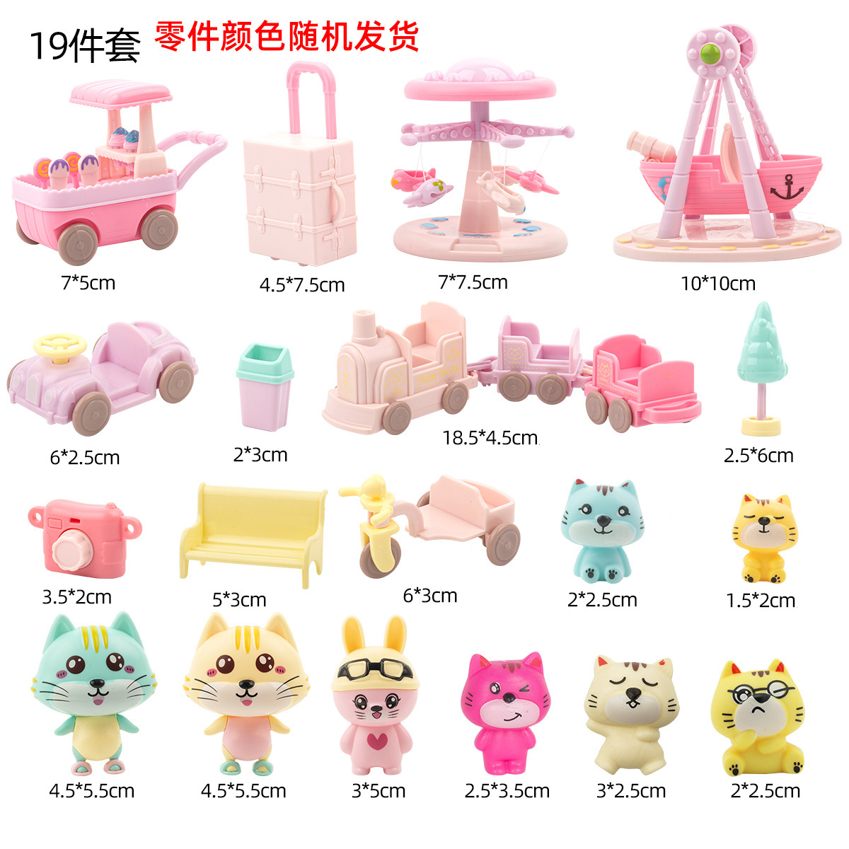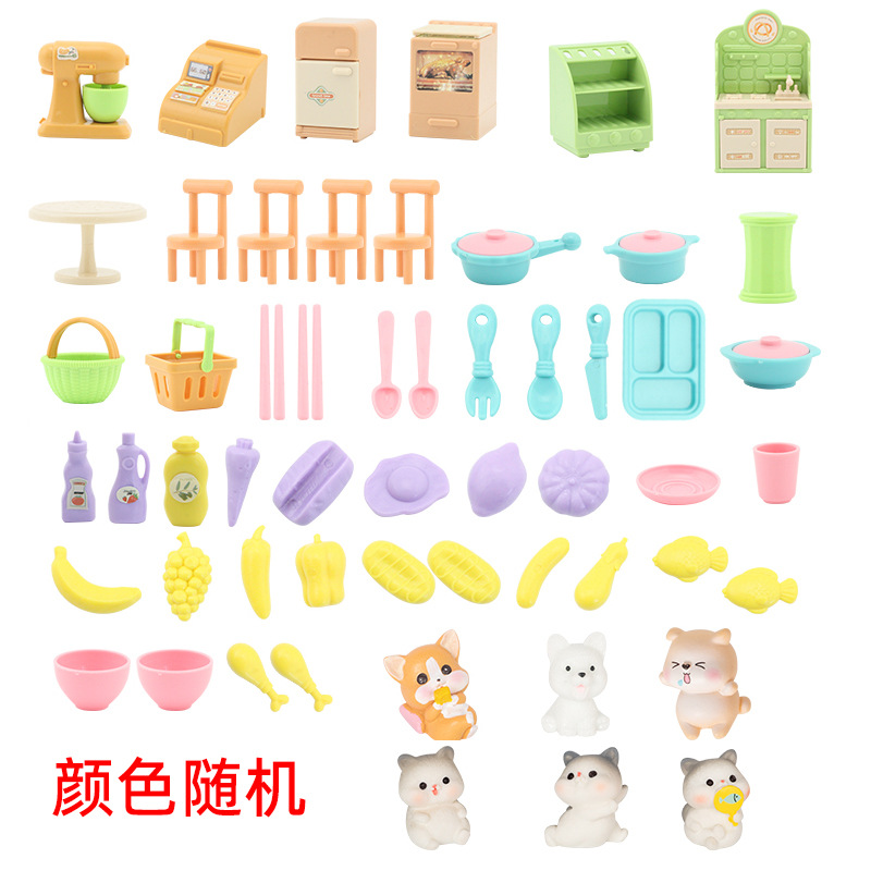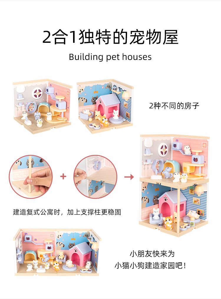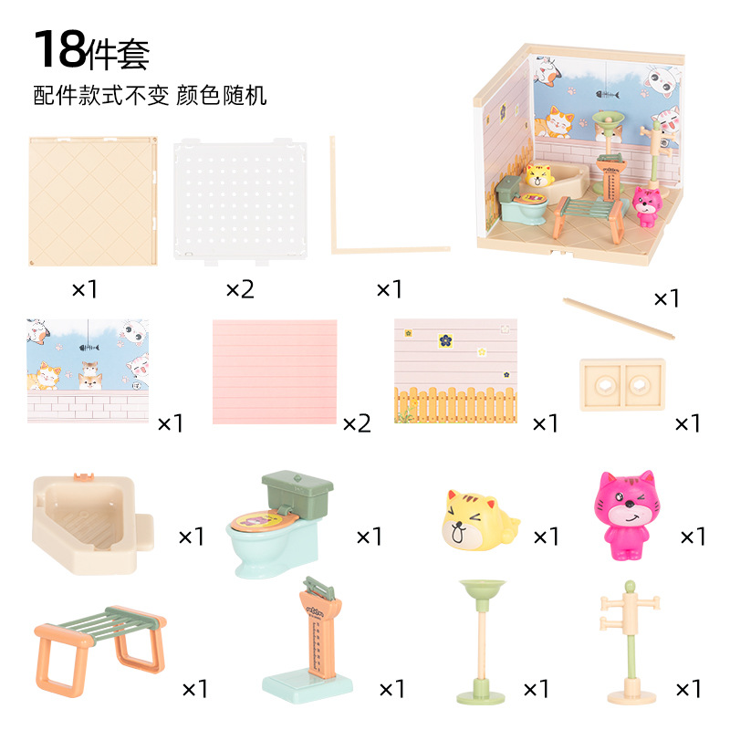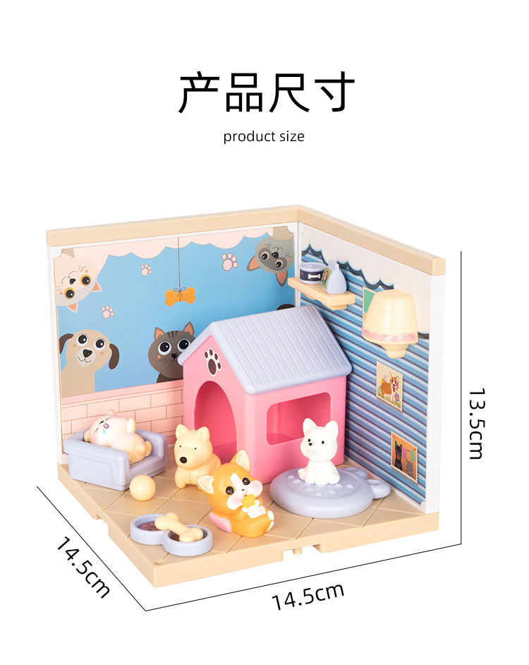 Longze 어린이 놀이 집 미니 가구 고양이 주방 장면 캐빈 하우스 애완 동물 소녀 장난감