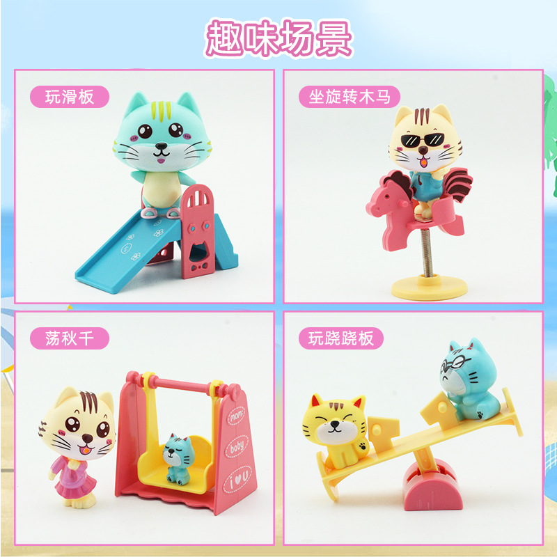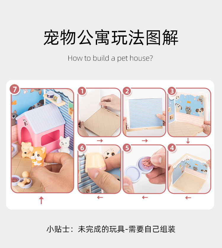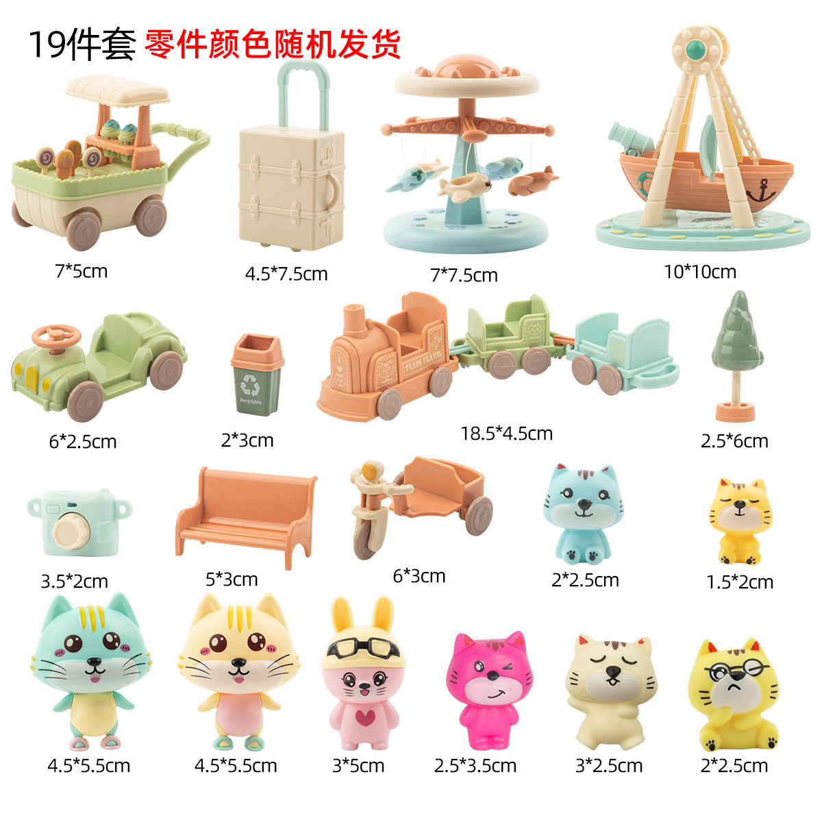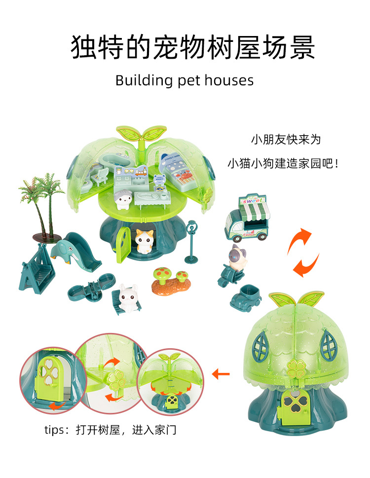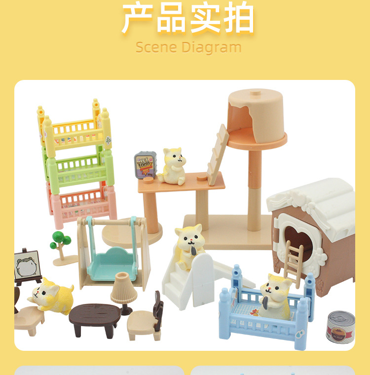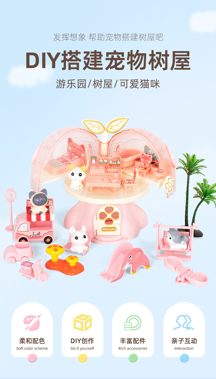 Longze 어린이 놀이 집 미니 가구 고양이 주방 장면 캐빈 하우스 애완 동물 소녀 장난감