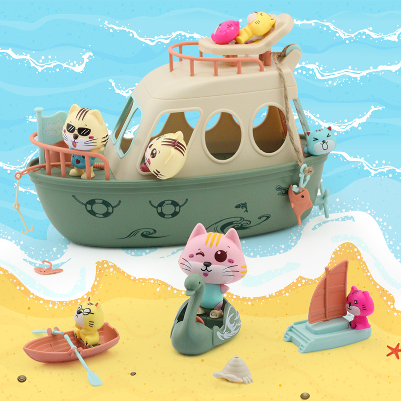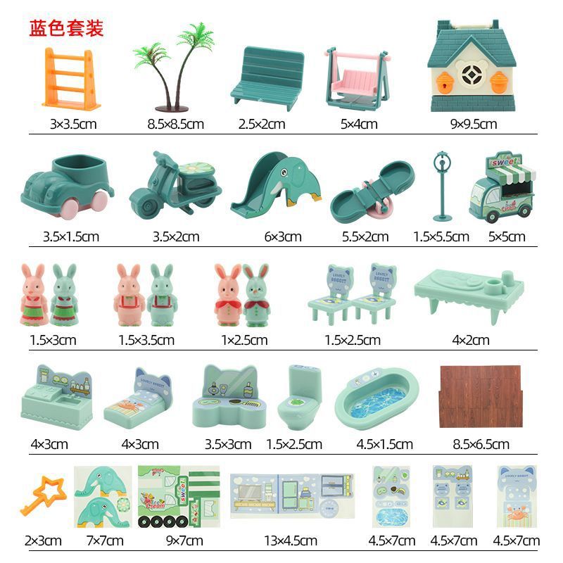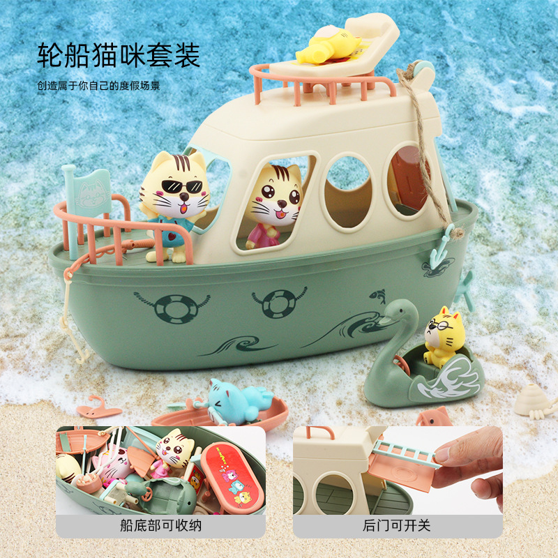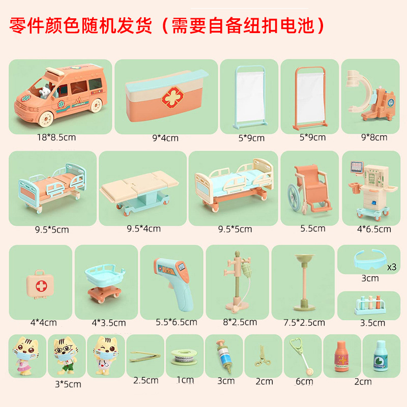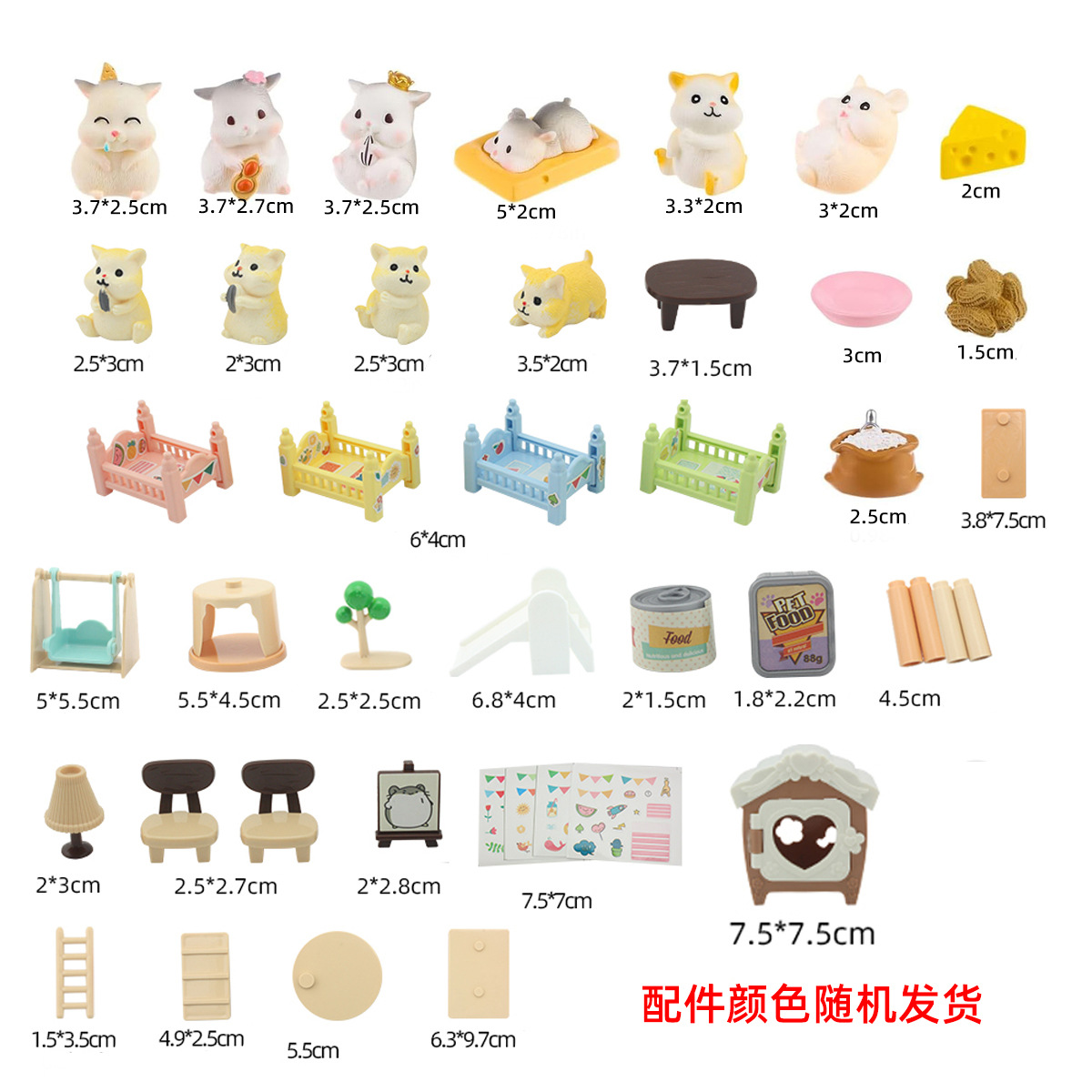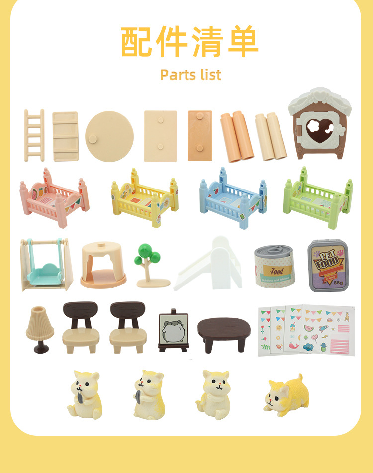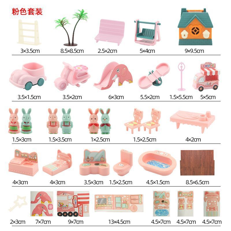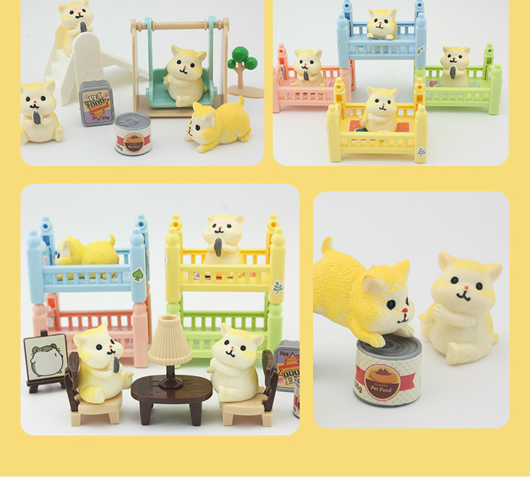 Longze 어린이 놀이 집 미니 가구 고양이 주방 장면 캐빈 하우스 애완 동물 소녀 장난감