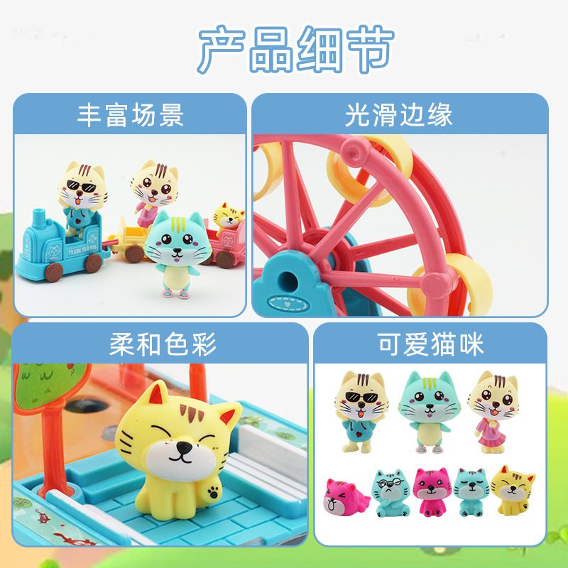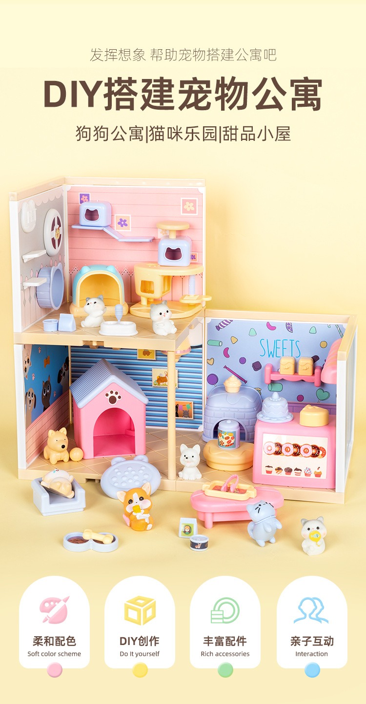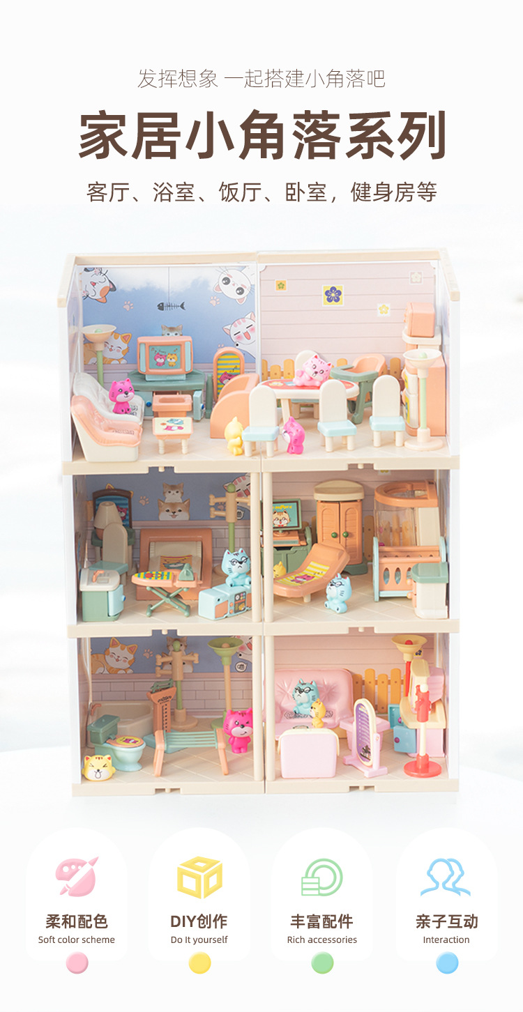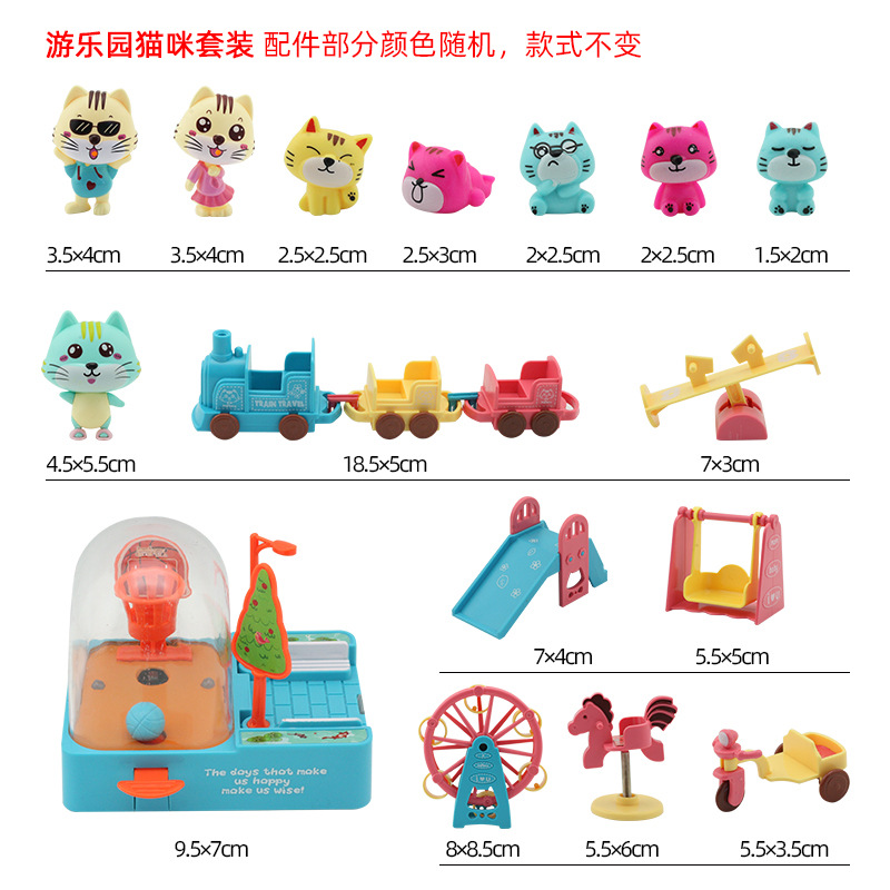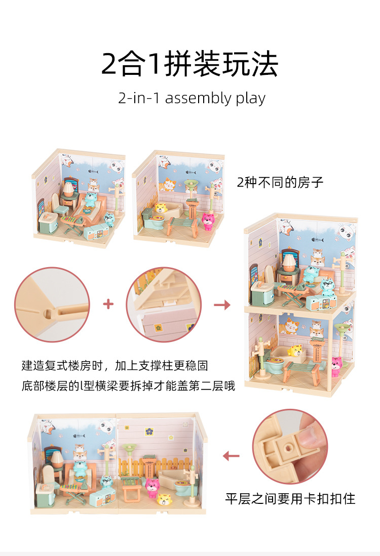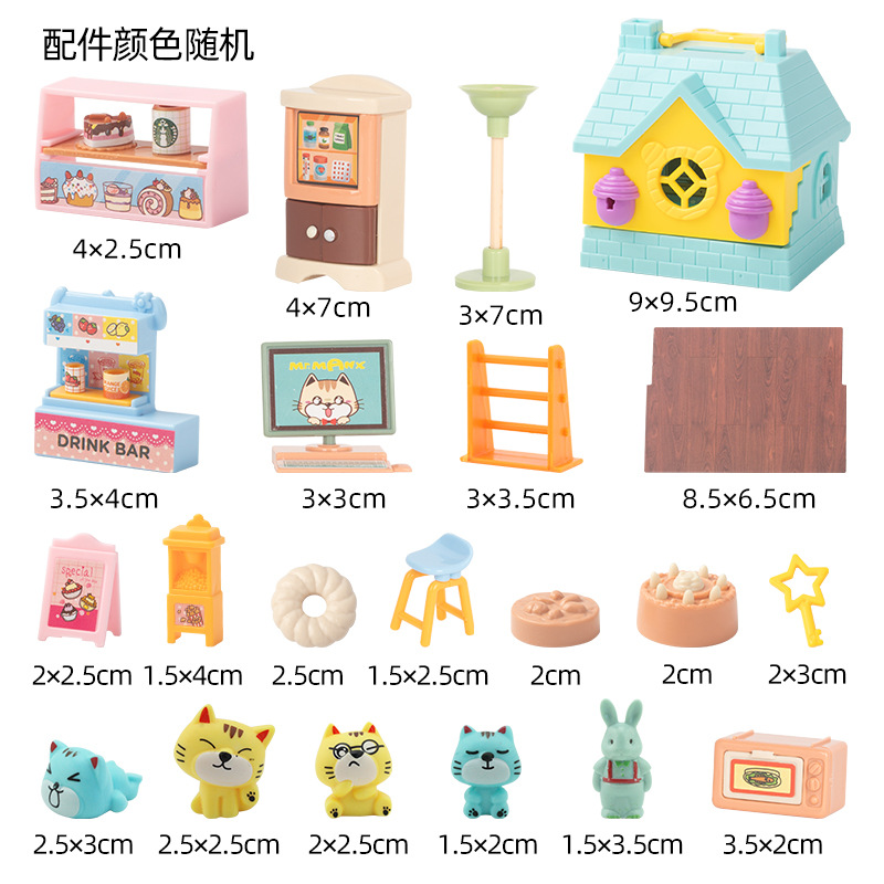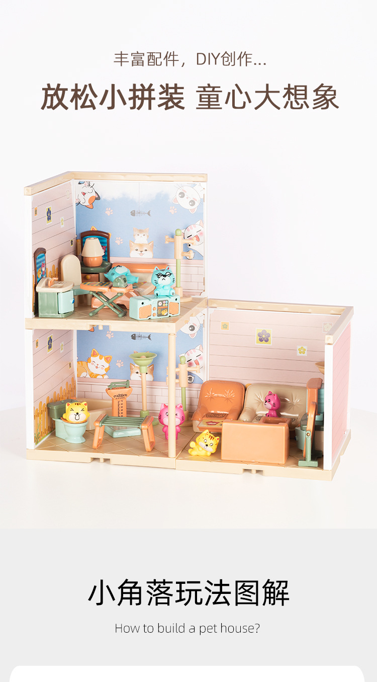 Longze 어린이 놀이 집 미니 가구 고양이 주방 장면 캐빈 하우스 애완 동물 소녀 장난감스토어 가기
