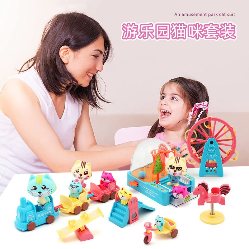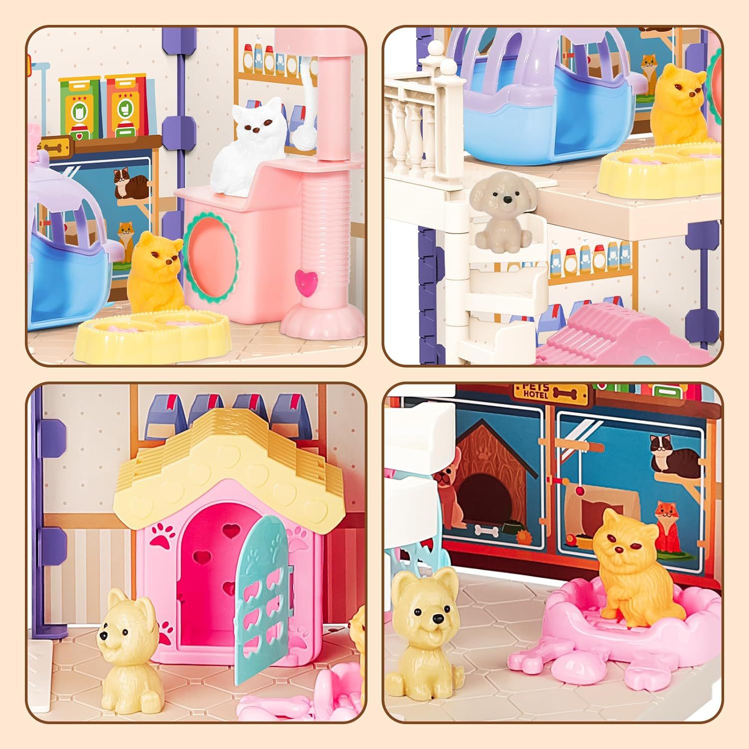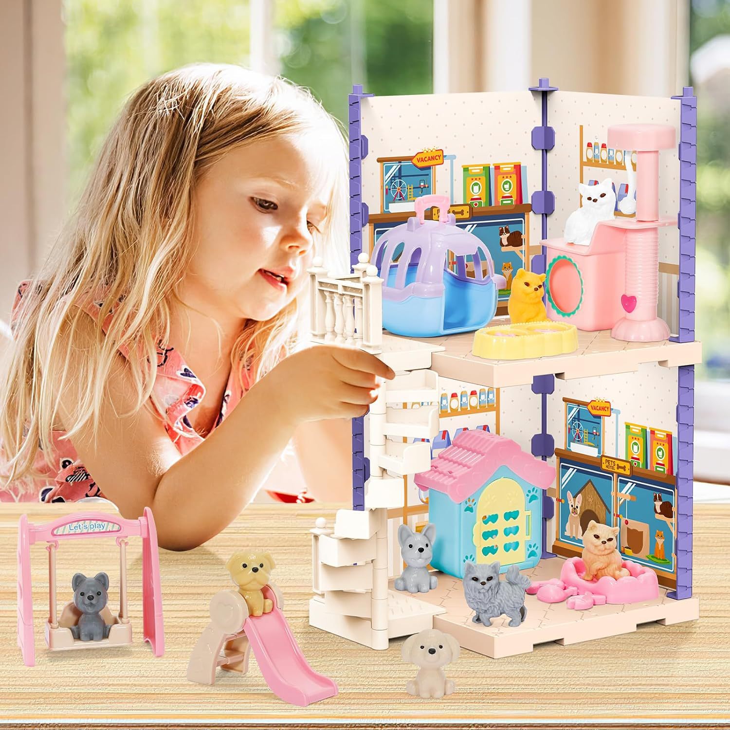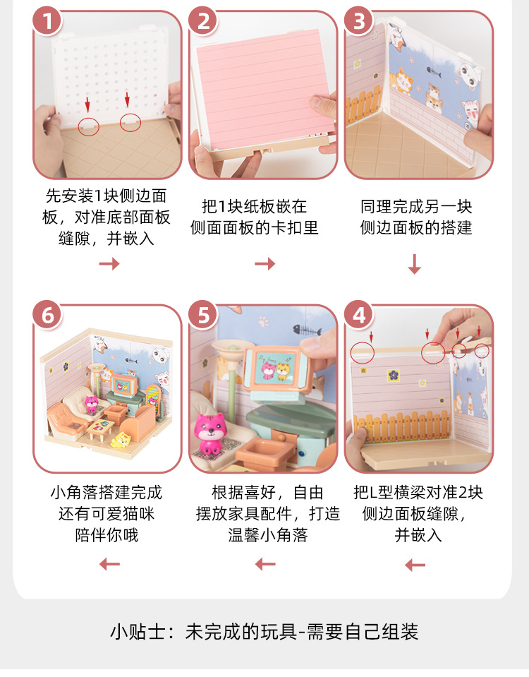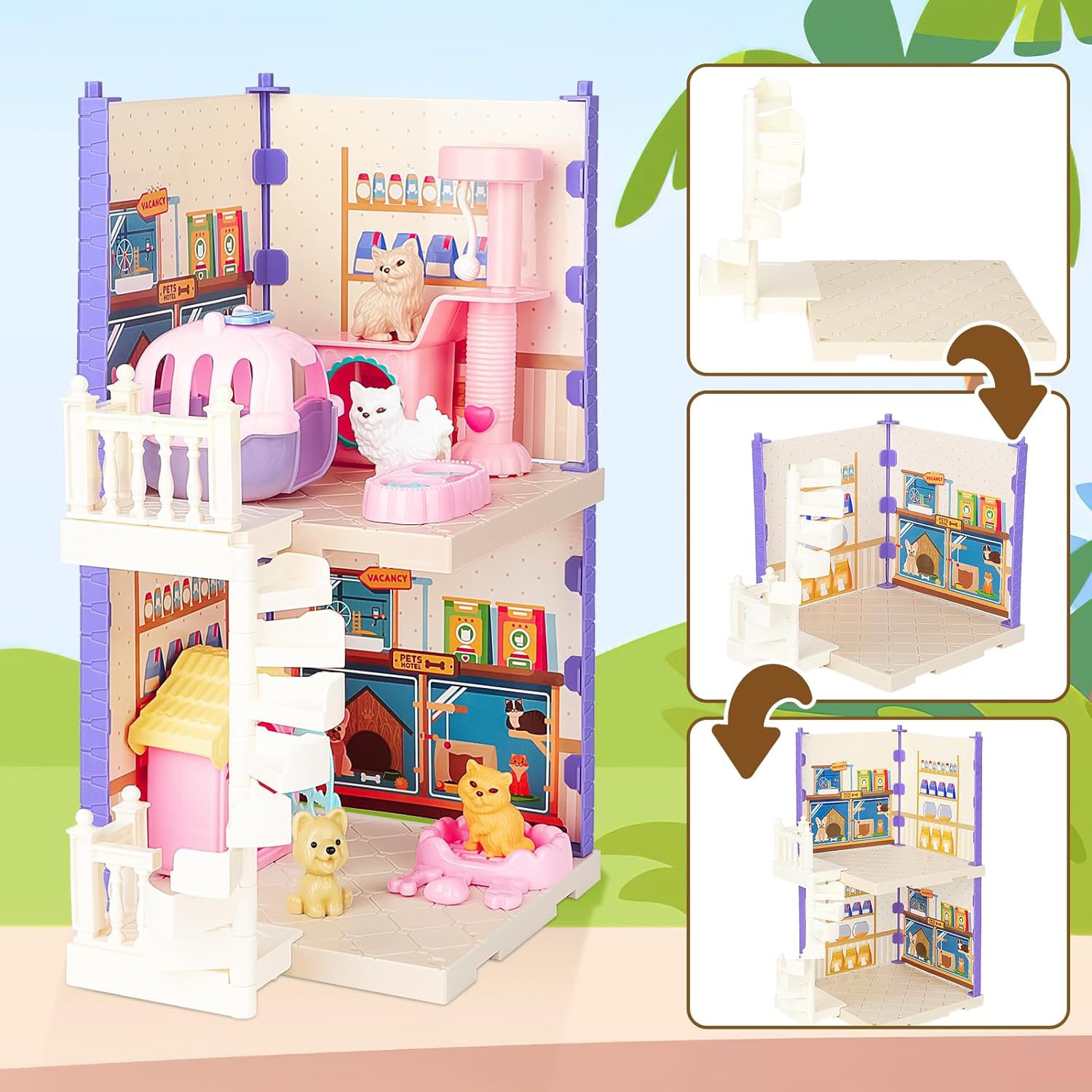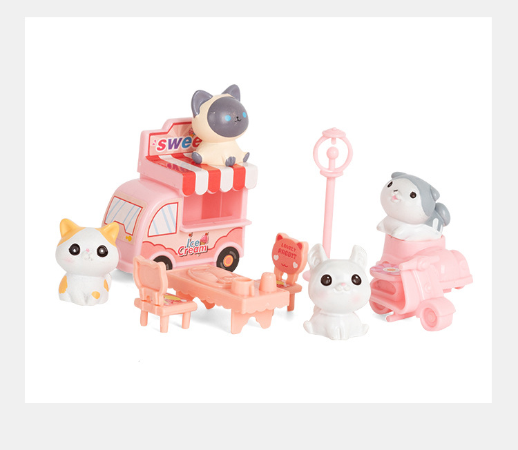 Longze 어린이 놀이 집 미니 가구 고양이 주방 장면 캐빈 하우스 애완 동물 소녀 장난감스토어 가기