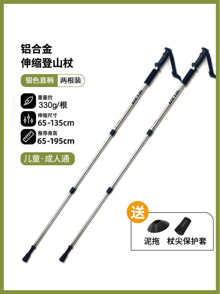 • 3단 텔레스코픽 직선 손잡이 실버 [2개 팩]