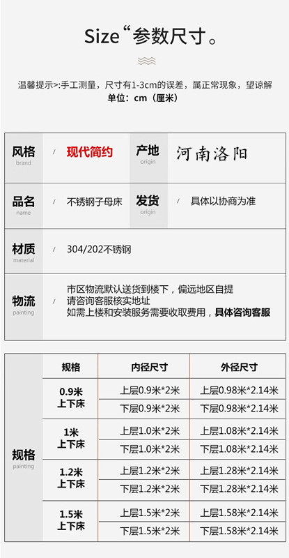 SUS环保加厚上下铺双层不锈钢架床学生员工宿舍家用出租房子母床
