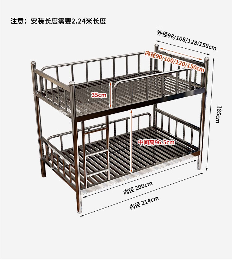 304스테인리스 이층침대, 상하층 침대, 기숙사 직원용, 2인용, 1.2m 성인용, 기숙사 전용 하이베드