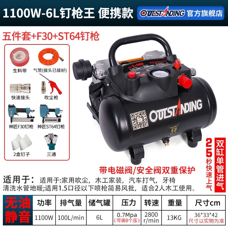 ATUS 오일 프리 네일 건 킹 공기 압축기 목공 소형 자동 고압 공기 펌프 공기 압축기 220V 가정용스토어 가기