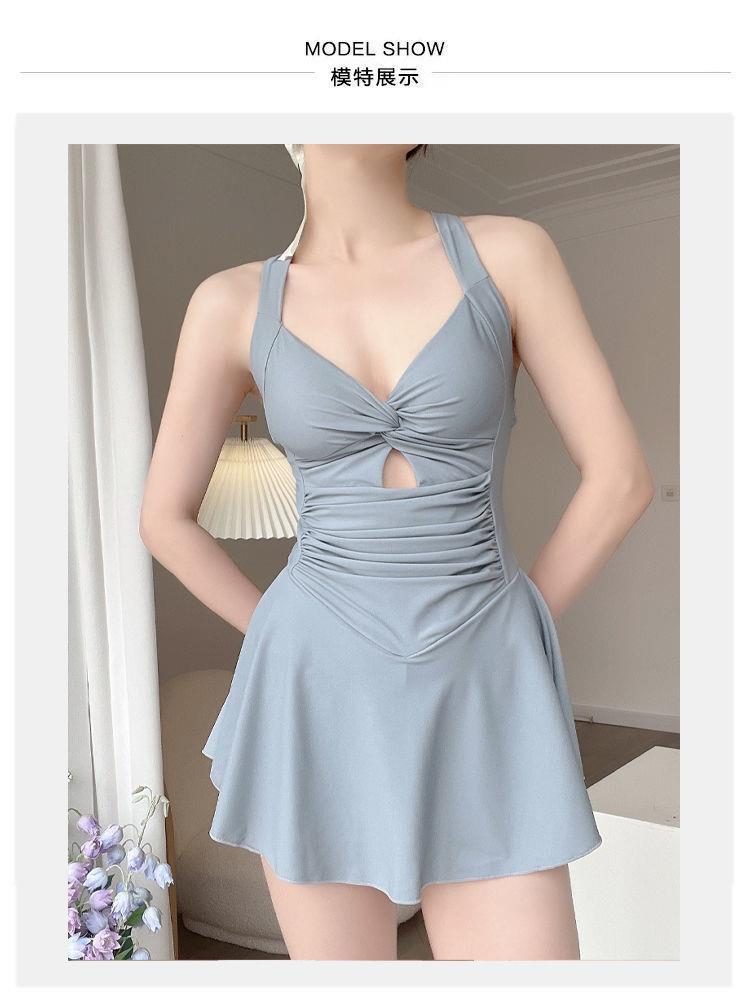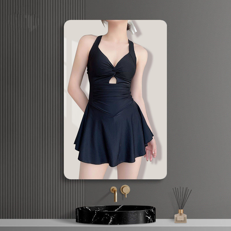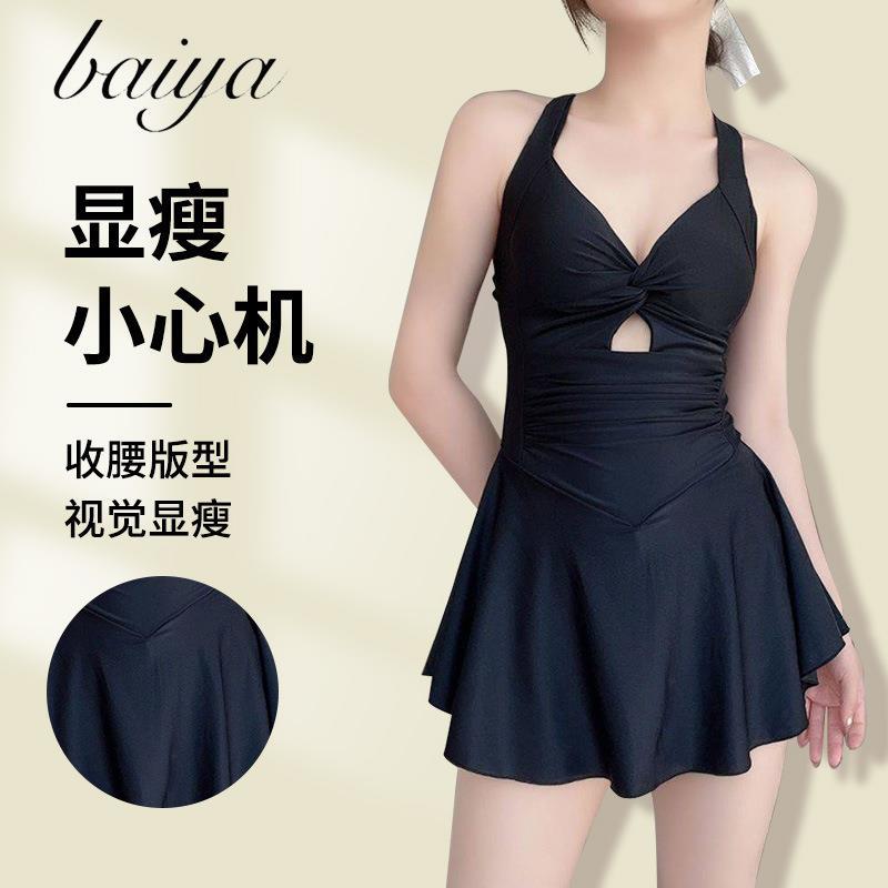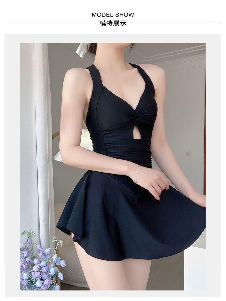 여성용 새로운 검은색 푸시업 온천 수영복, 원피스 보수적 수영복, 도매 수영복, 여름 휴가 슬리밍 스커트스토어 가기