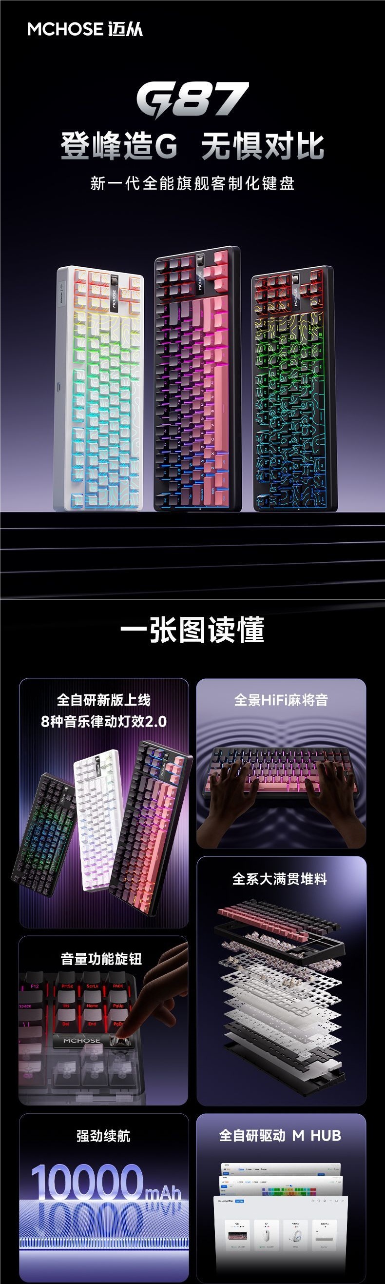 MCHOSE G87 맞춤형 기계식 키보드 가스켓 구조 무선 3모드 e스포츠 게임 사무실스토어 가기