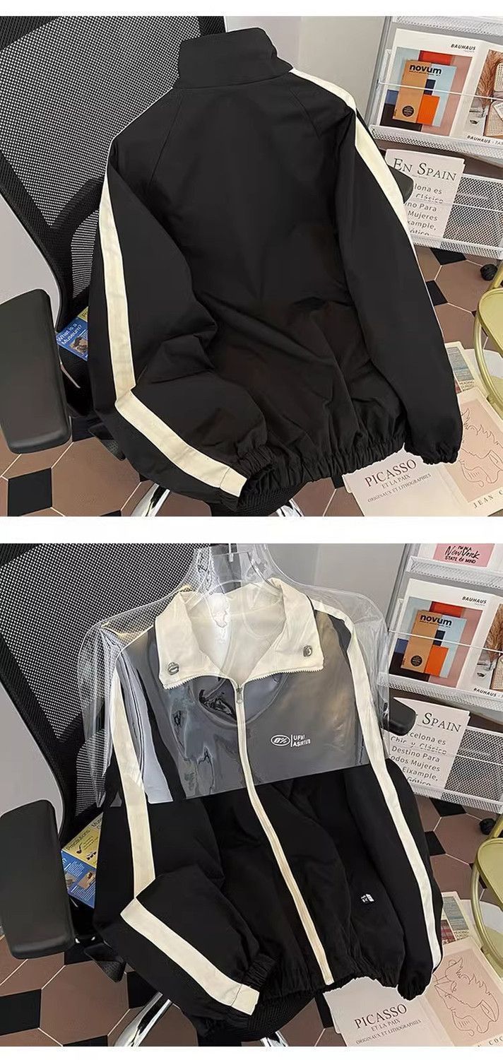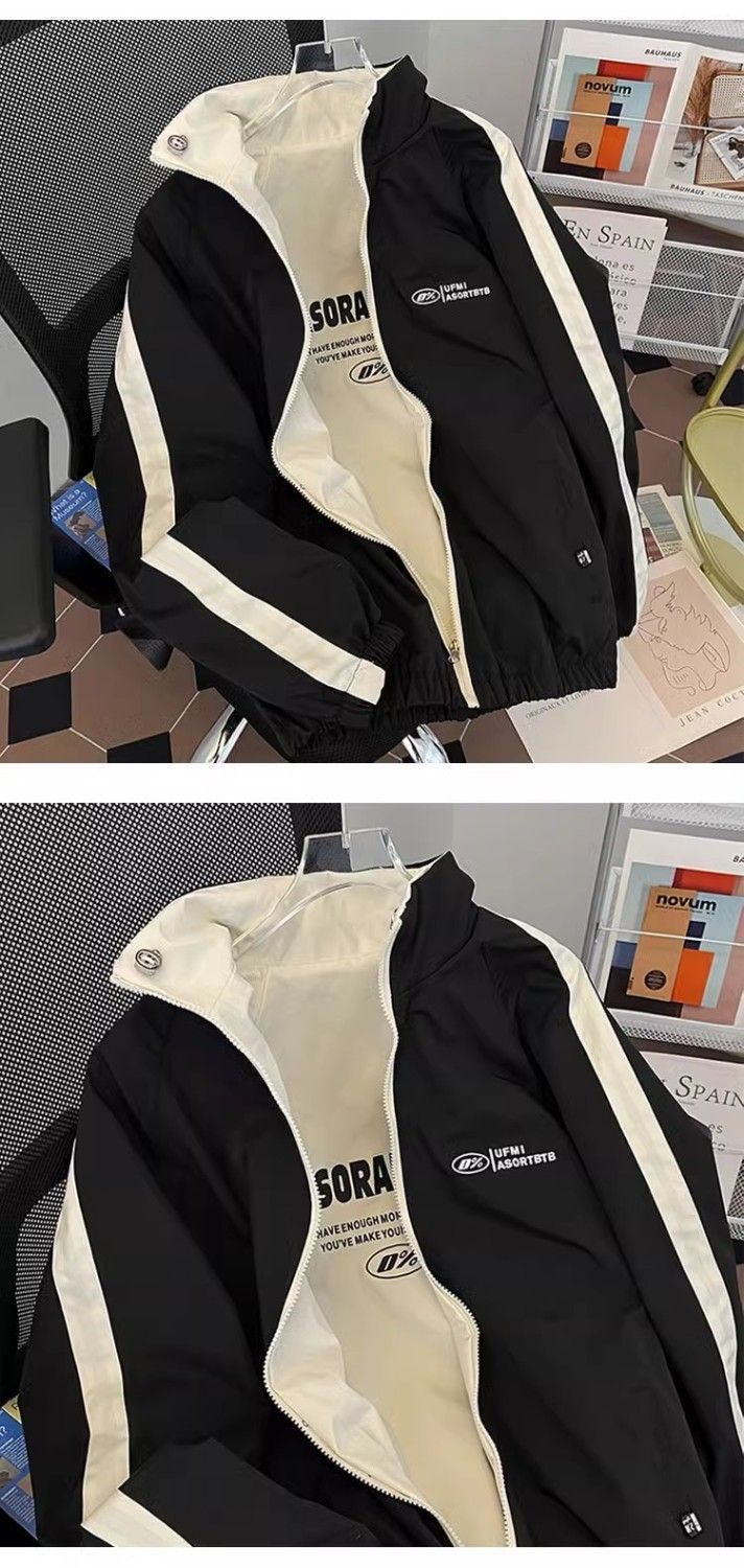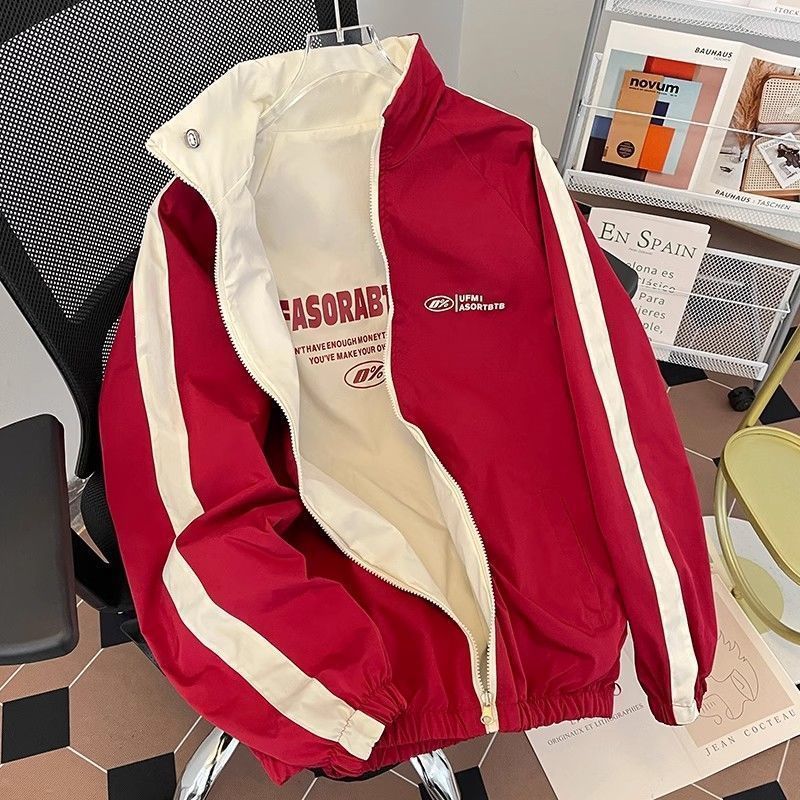 리버시블 재킷 봄, 가을 남성용 방수 재킷 루즈하고 다재다능한 커플 캐주얼 스탠드 칼라 재킷 남성용 및 여성용 탑스토어 가기