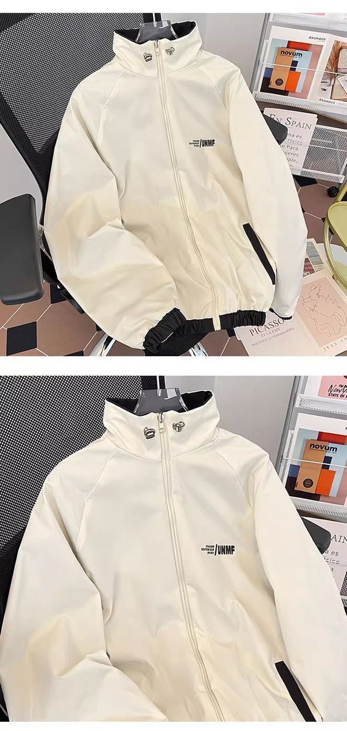 리버시블 재킷 봄, 가을 남성용 방수 재킷 루즈하고 다재다능한 커플 캐주얼 스탠드 칼라 재킷 남성용 및 여성용 탑